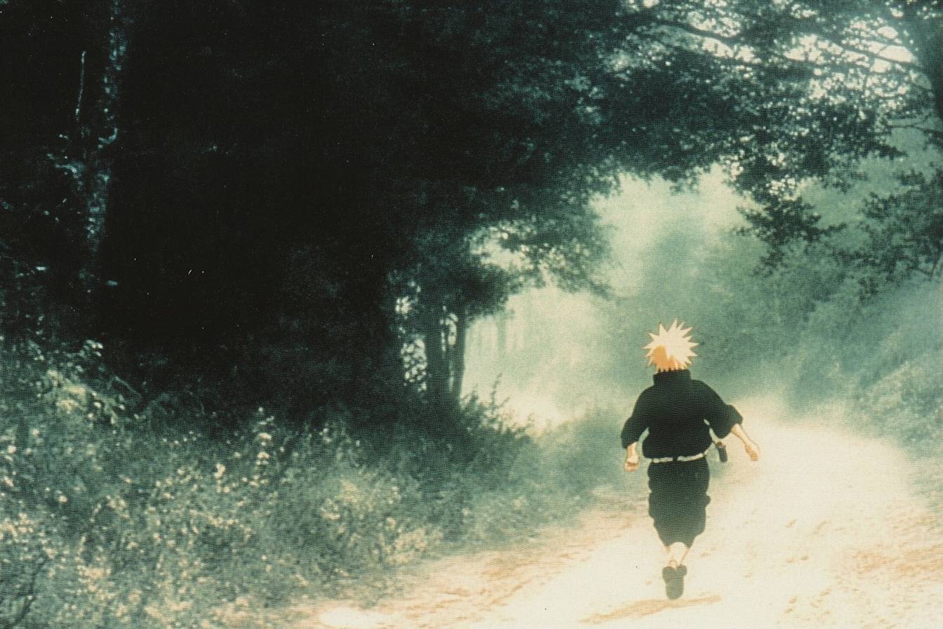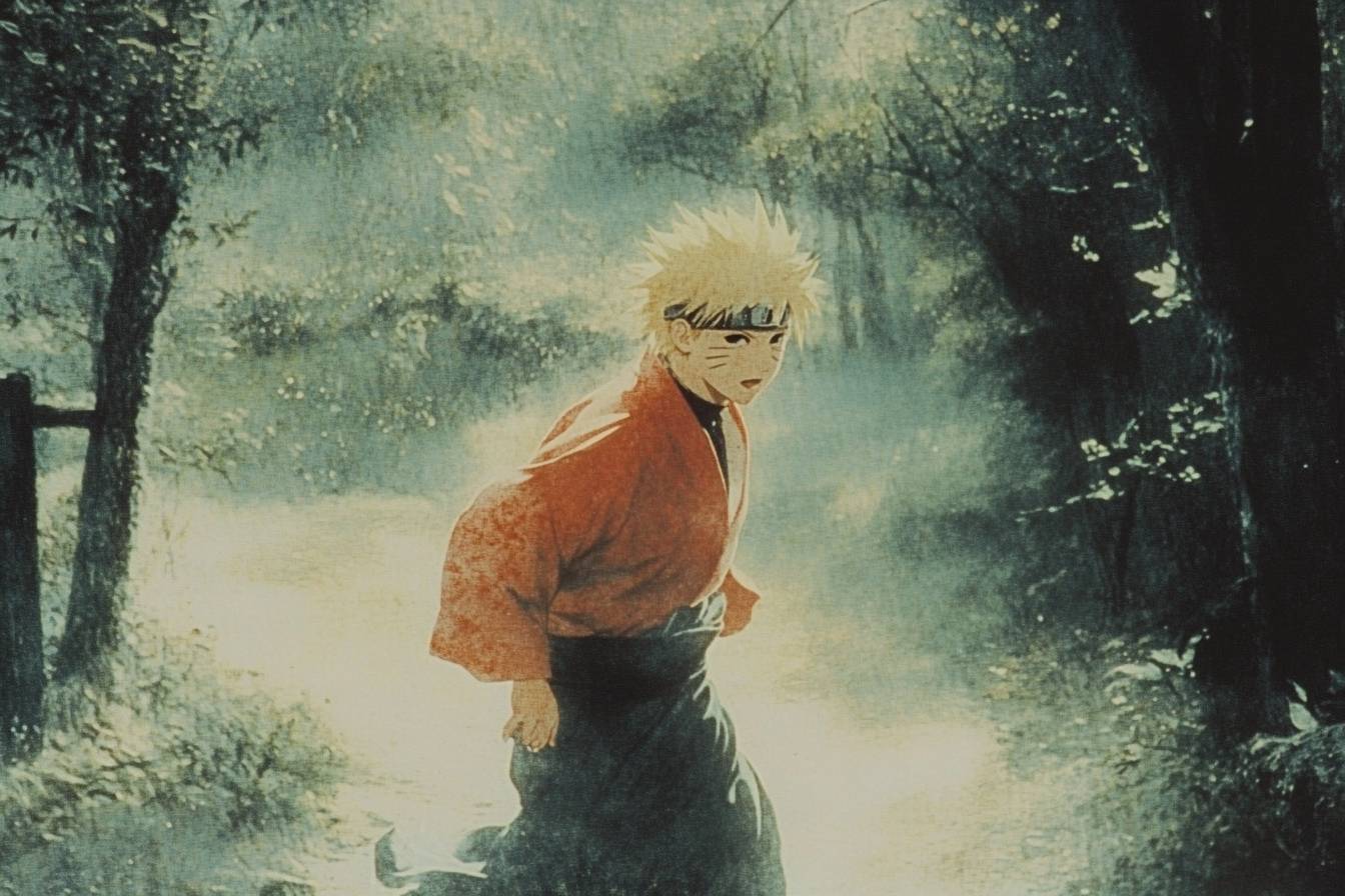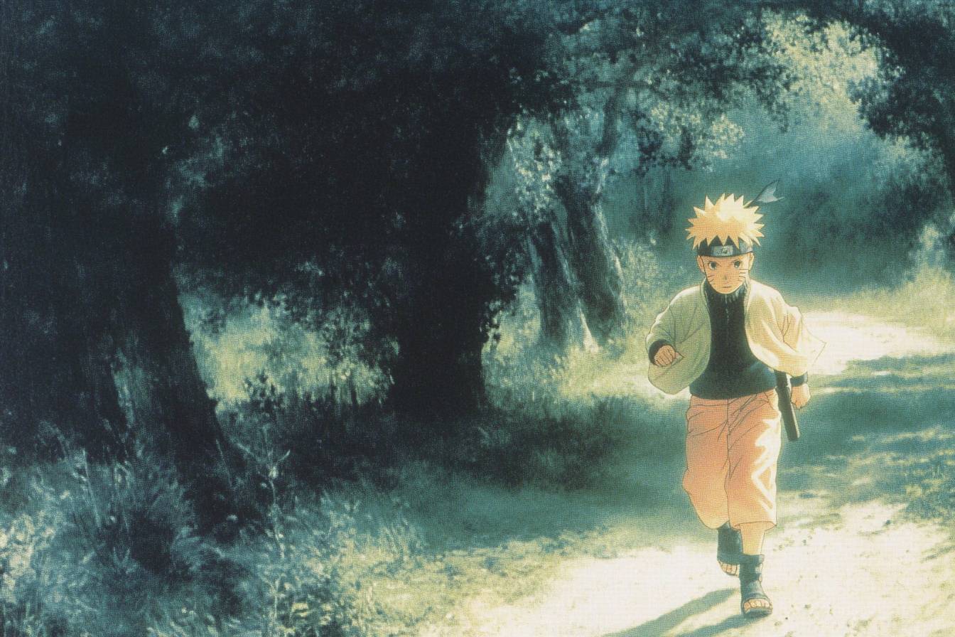 Naruto corriendo a través de un bosque