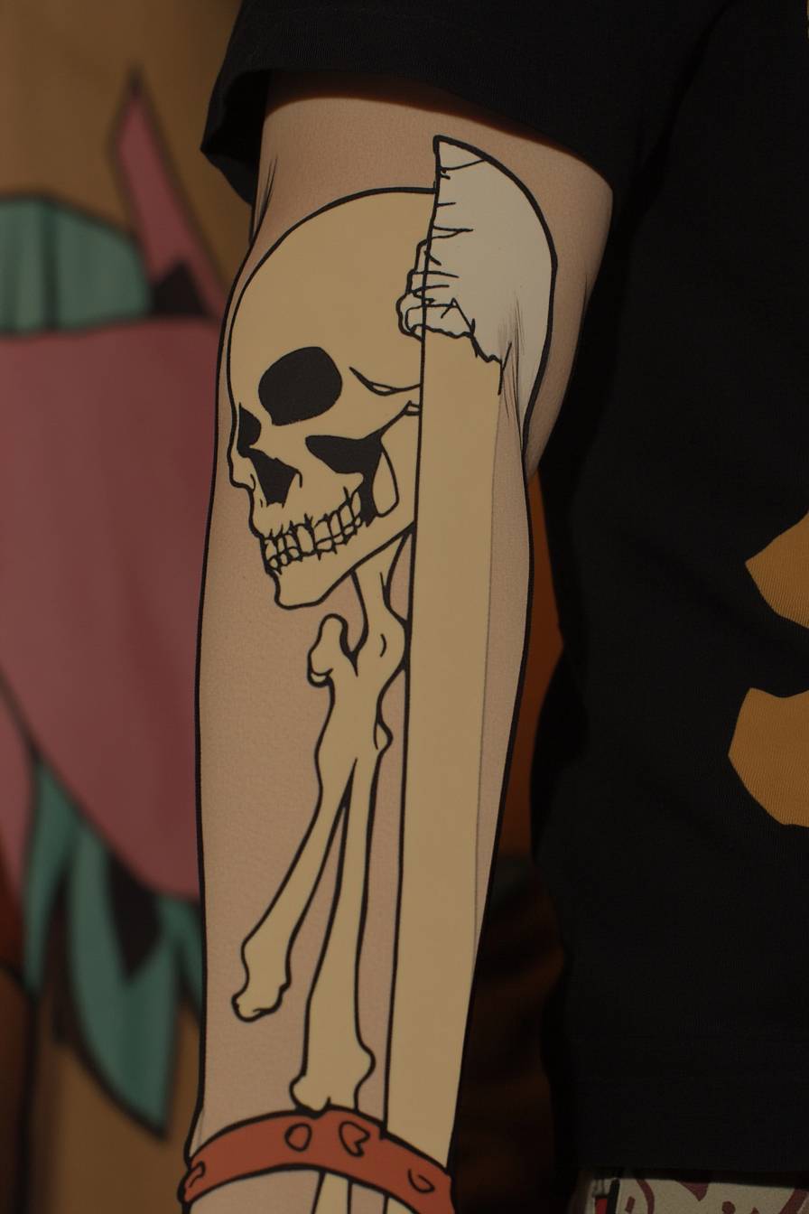 La parca negra lleva una manga blanca.