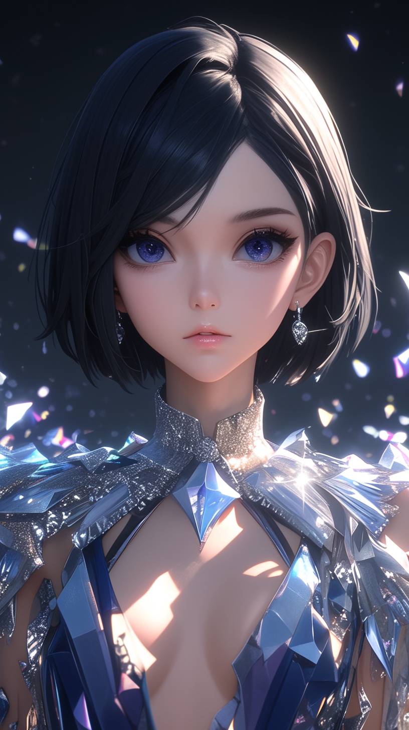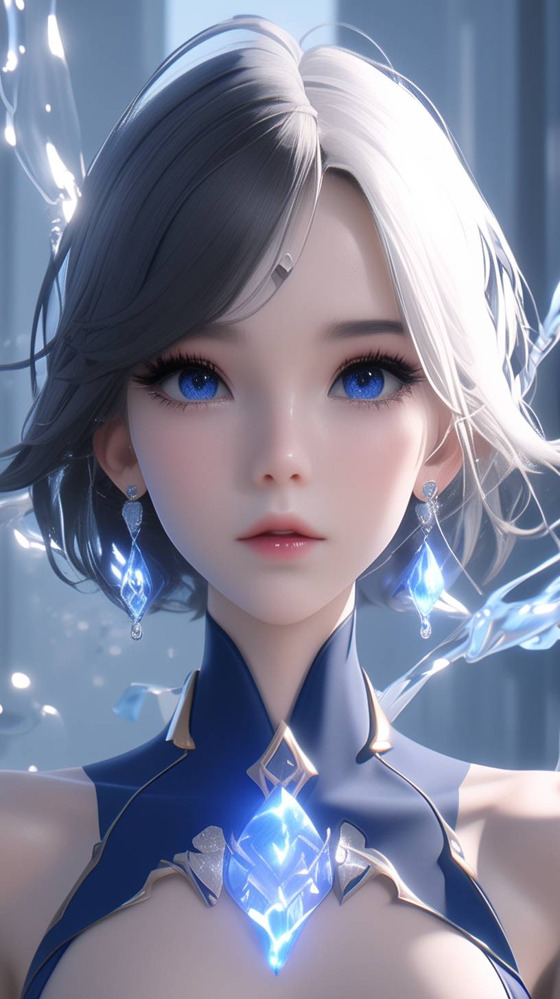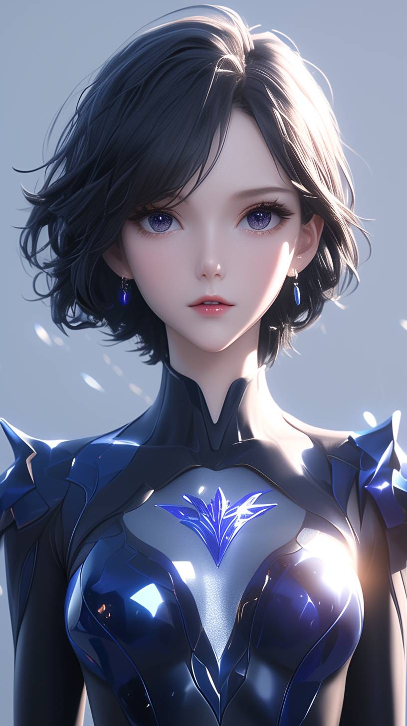 Front view,Beautiful and cool 20-year-old girl wearing super fashionable iridescent blue and Golden suit, midrange portrait ,Heart to heart movements,bright and simple surreal background, surreal character, fair face, author: Hajime Sorayama, Tetsuo Hara, Yuki kamei, Makoto Shinkai, Studio Ghibli, Nikon D850, 32K --ar 9:16 --style raw --sref 1575816549 --stylize 750 --niji 6