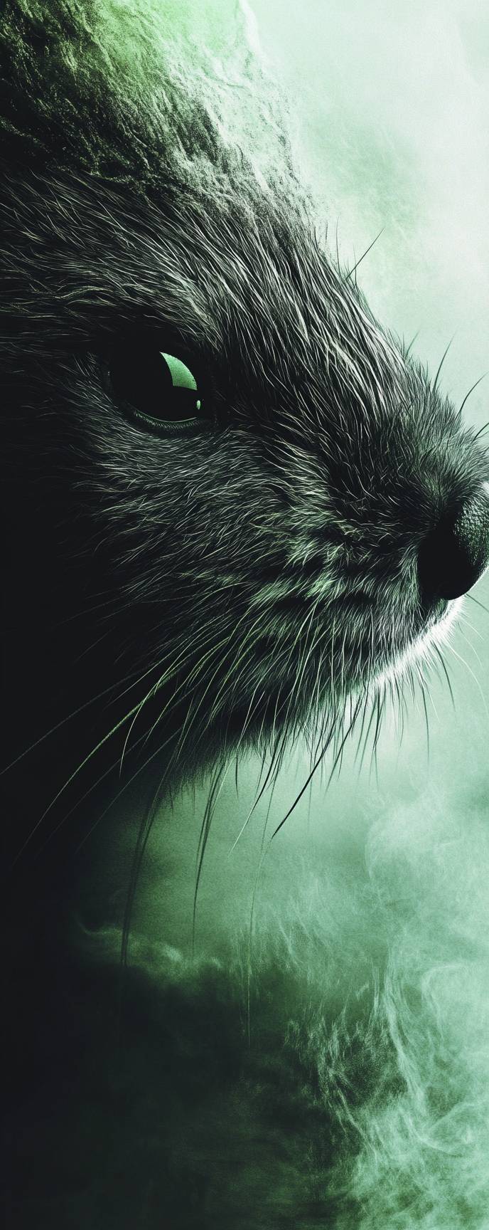 Minimalist fuzzy texture art illustration, sports minimalist style, blurred forms, combination of light green and black, solid color background, close-up, pure flat illustration, extremely high-definition image, clear and detailed depiction of a beaver's eyes, high aesthetic, graphical, blurred, felted, minimalist, ample white space, artistic conception, sophisticated, masterpiece. --v 6.1 --ar 2:5