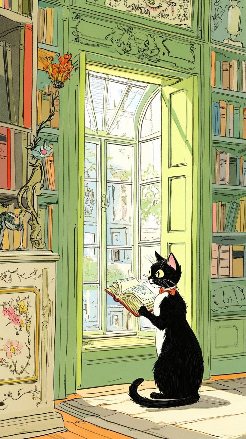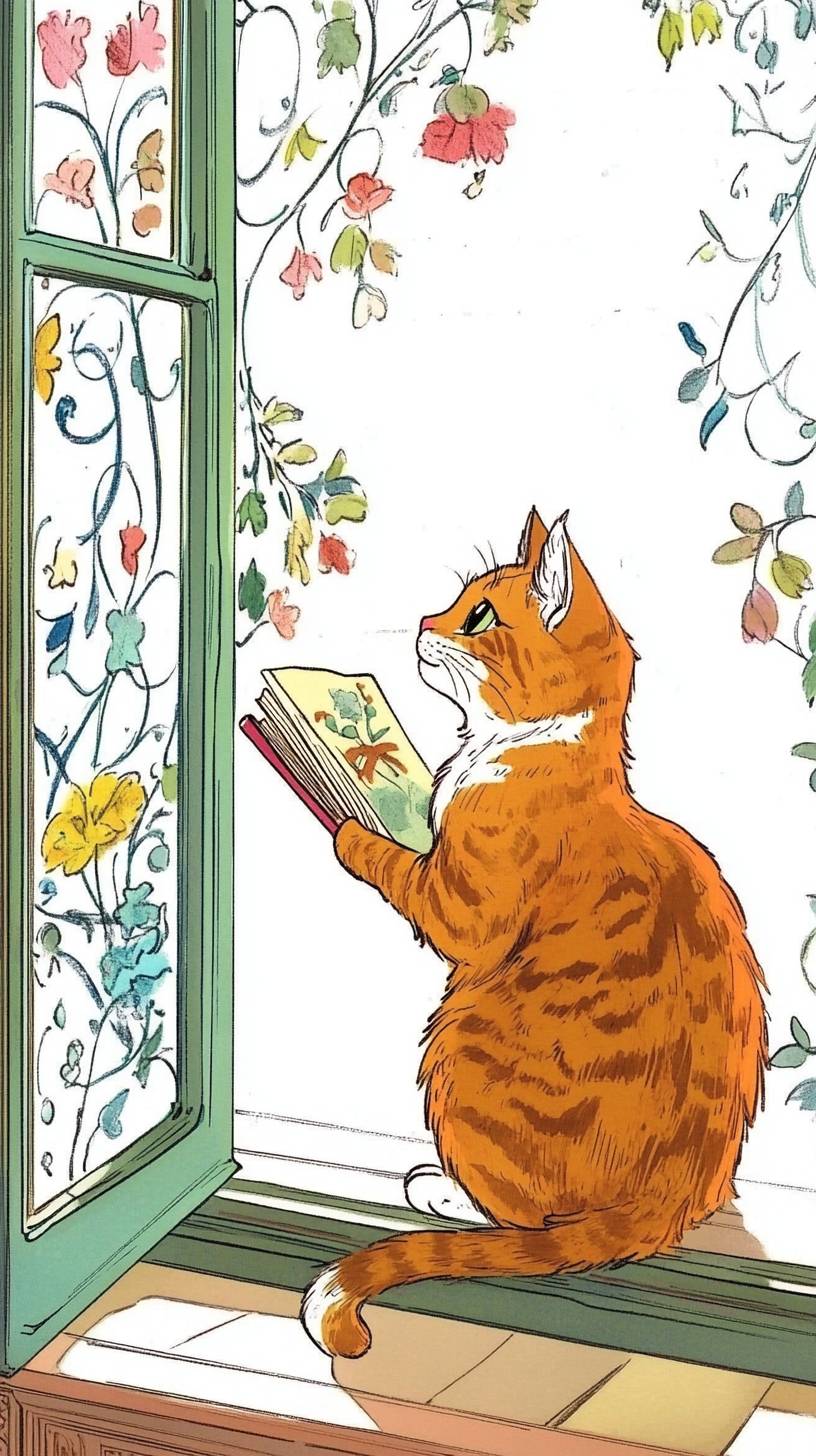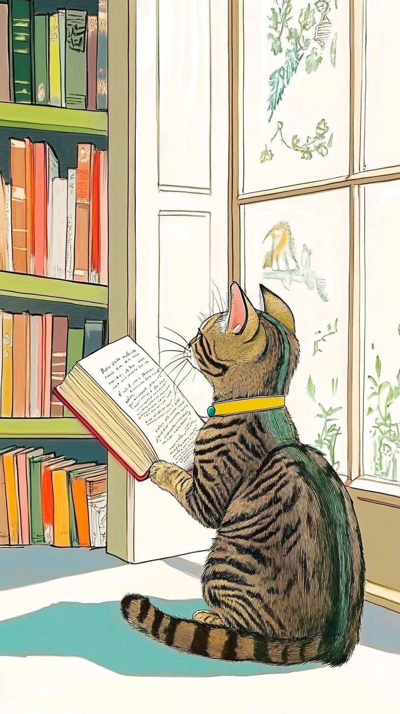 a beautiful cat, reading a book , in a ancient greek style library, bright colourful daylight through window, high resolution,8k --ar 9:16 --style raw --sref 2992812218 5282025 --v 6.1