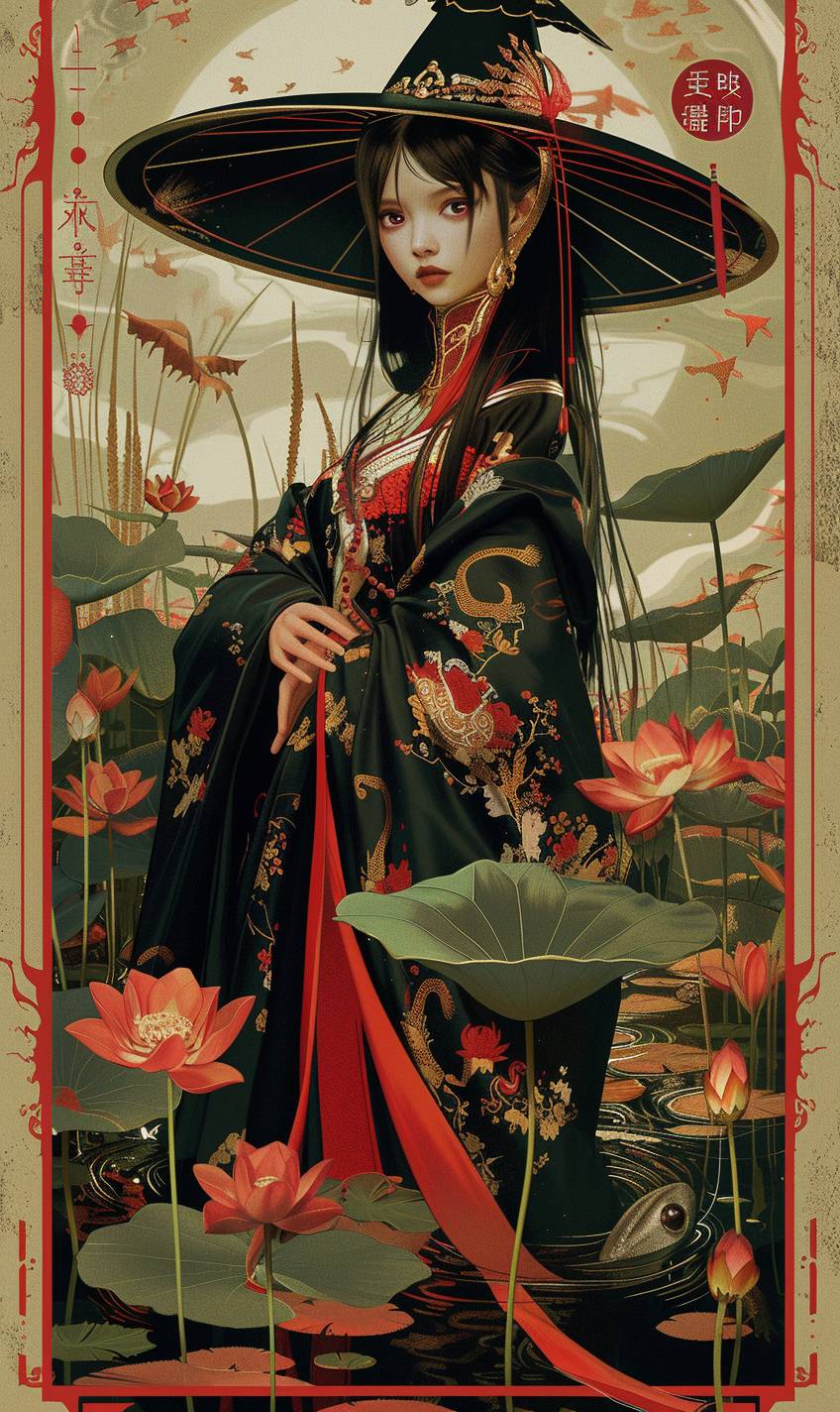 Ilustración de la reina hechicera del Reino Mágico de Pantano