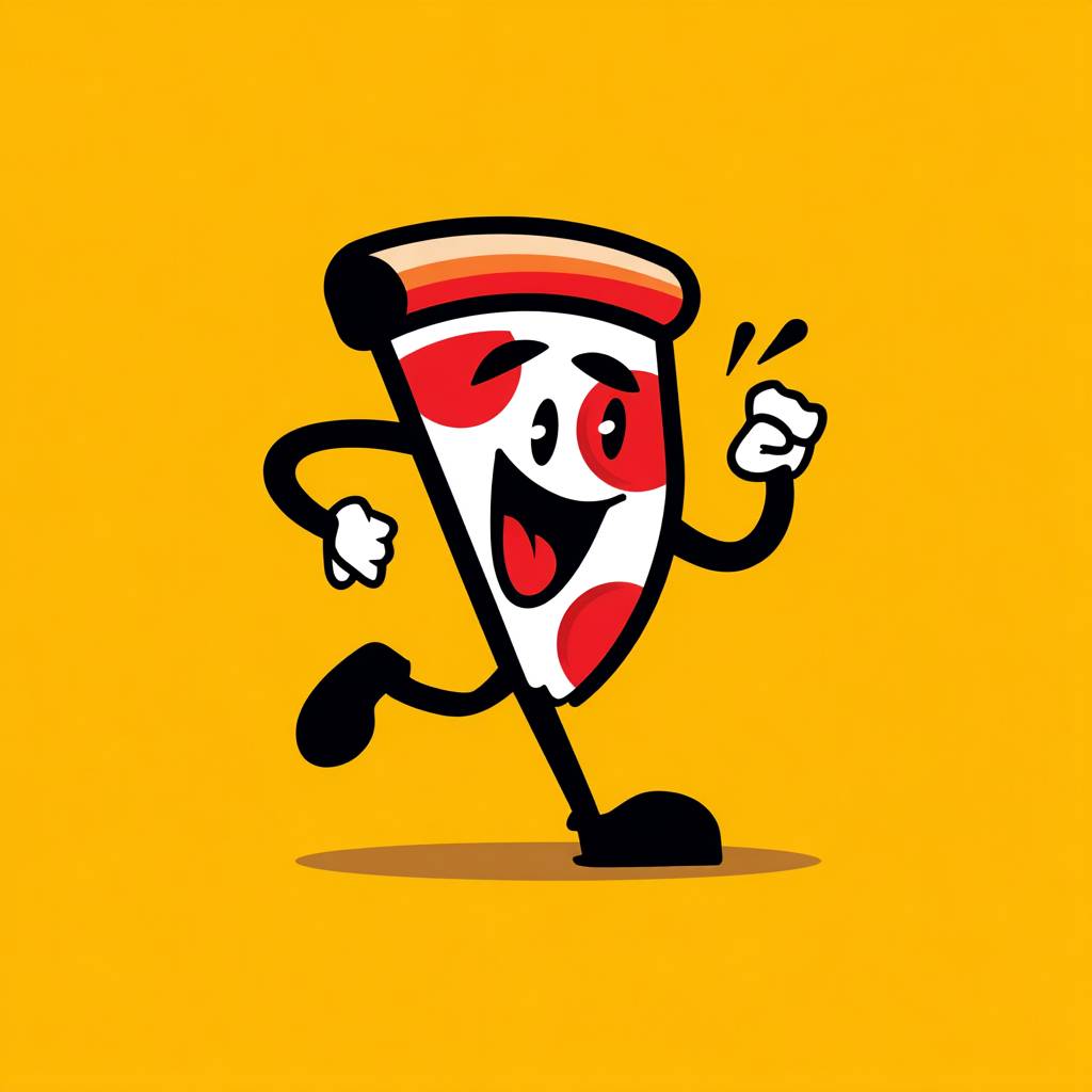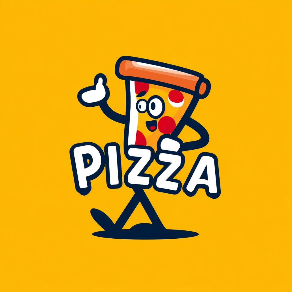 Logotipo de mascota de pizza, diseño de vector plano en 2D
