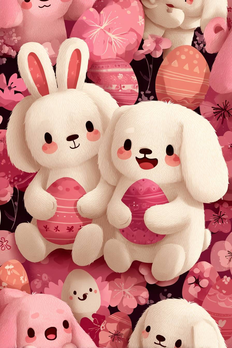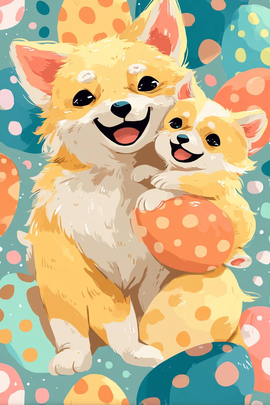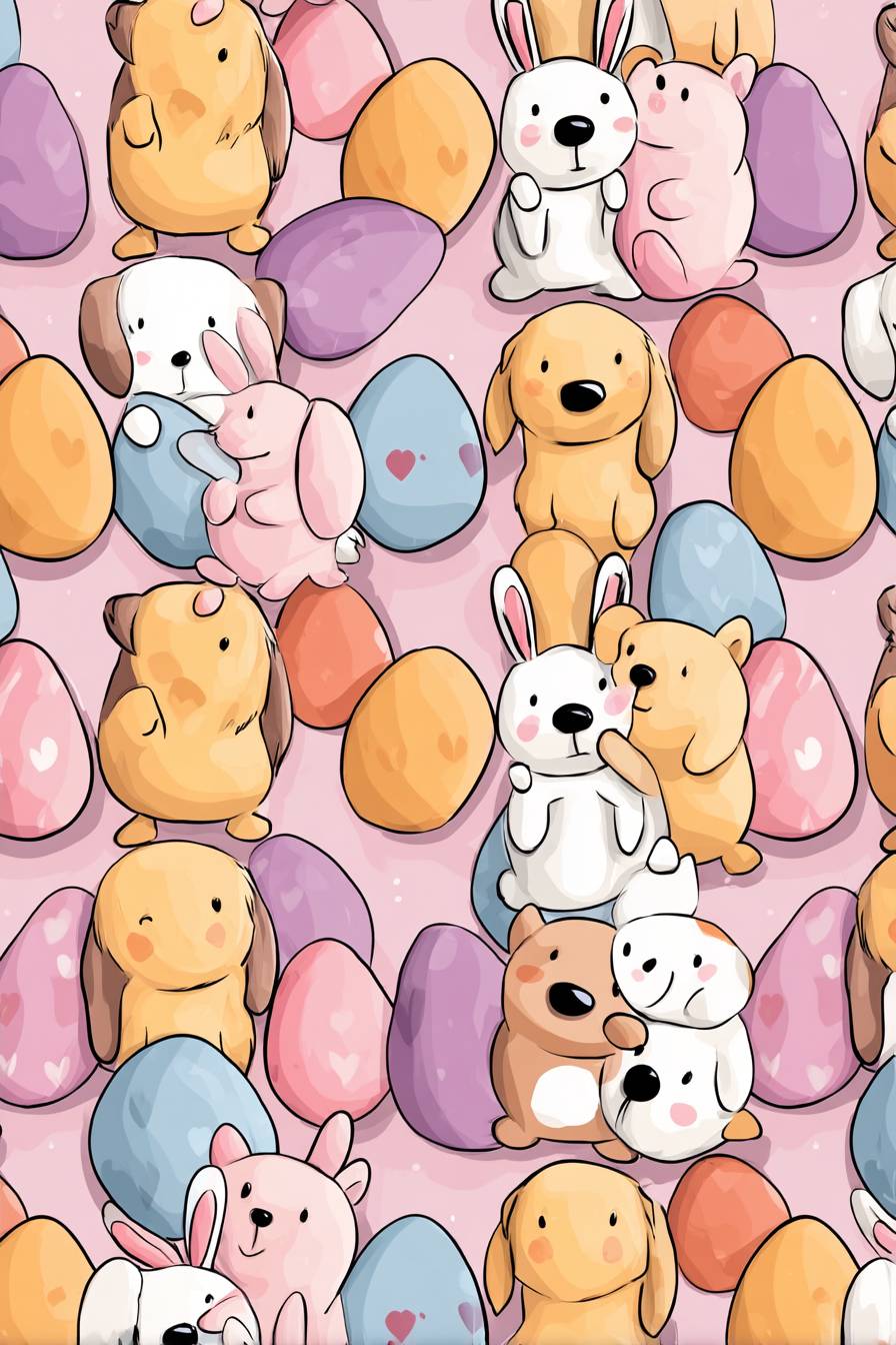 Patrón ininterrumpido de perros kawaii madre e hijo para Pascua, diseño de primavera en tonos pastel