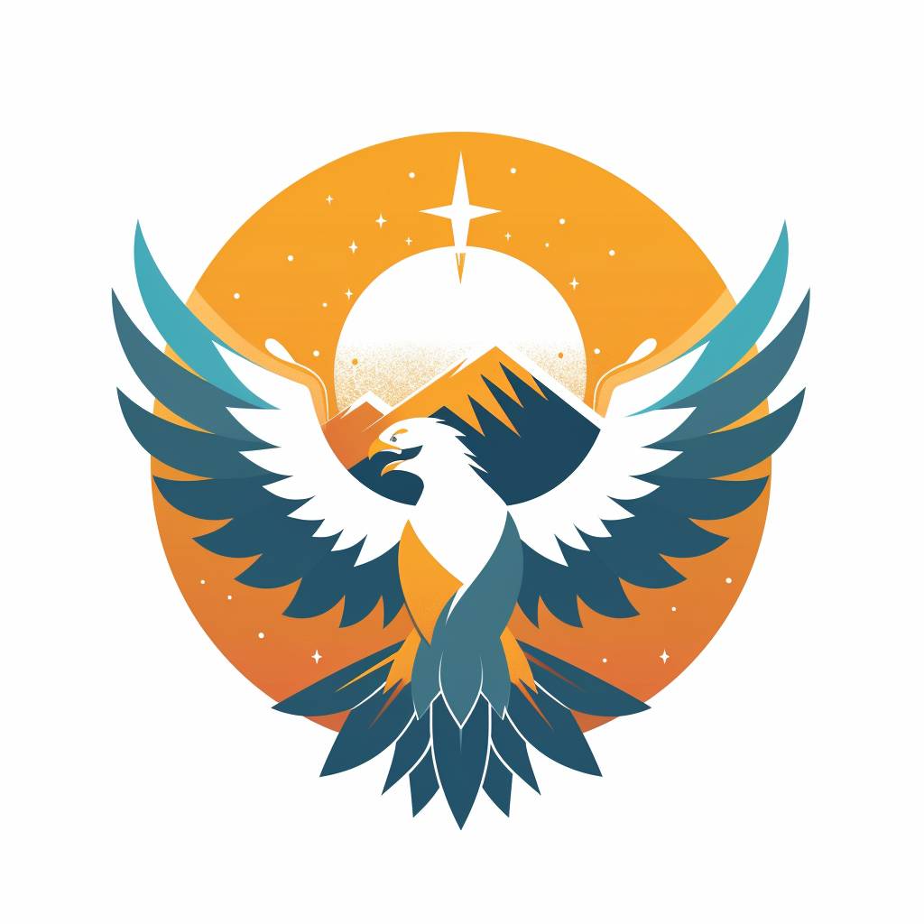Emblema moderno, color plano, fondo blanco sólido