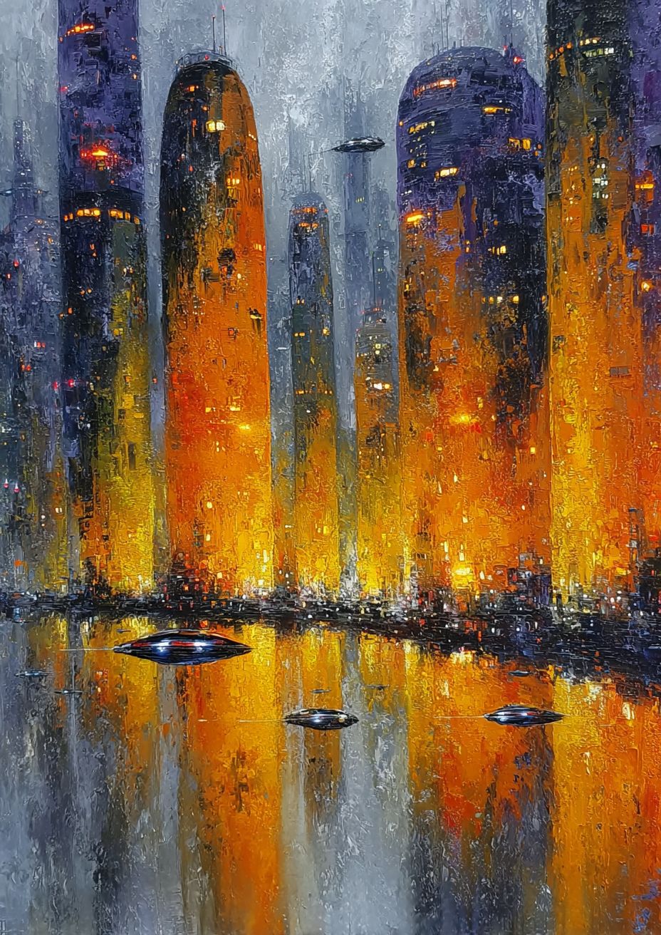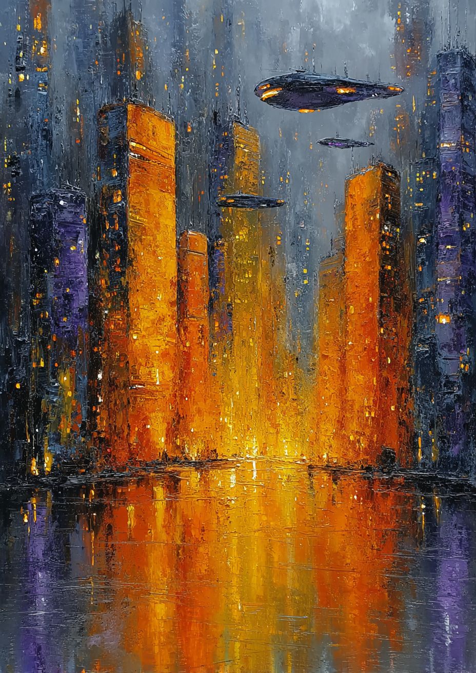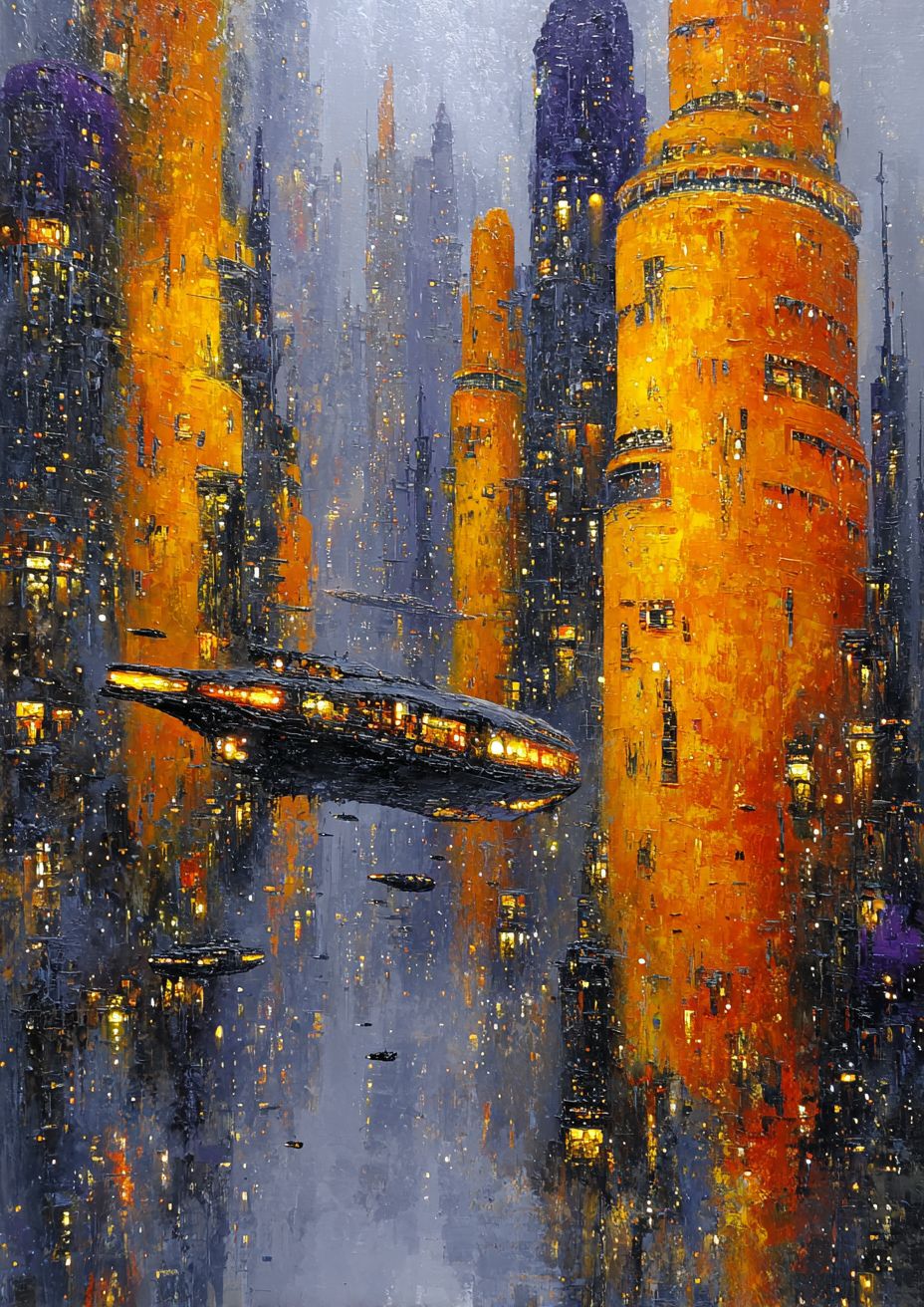 A futuristic city floating in the clouds, sleek skyscrapers with glowing accents, flying vehicles, hyper-detailed, sci-fi aesthetic, vibrant colors --ar 5:7 --sref 3322162017 --v 7.0 --s 750