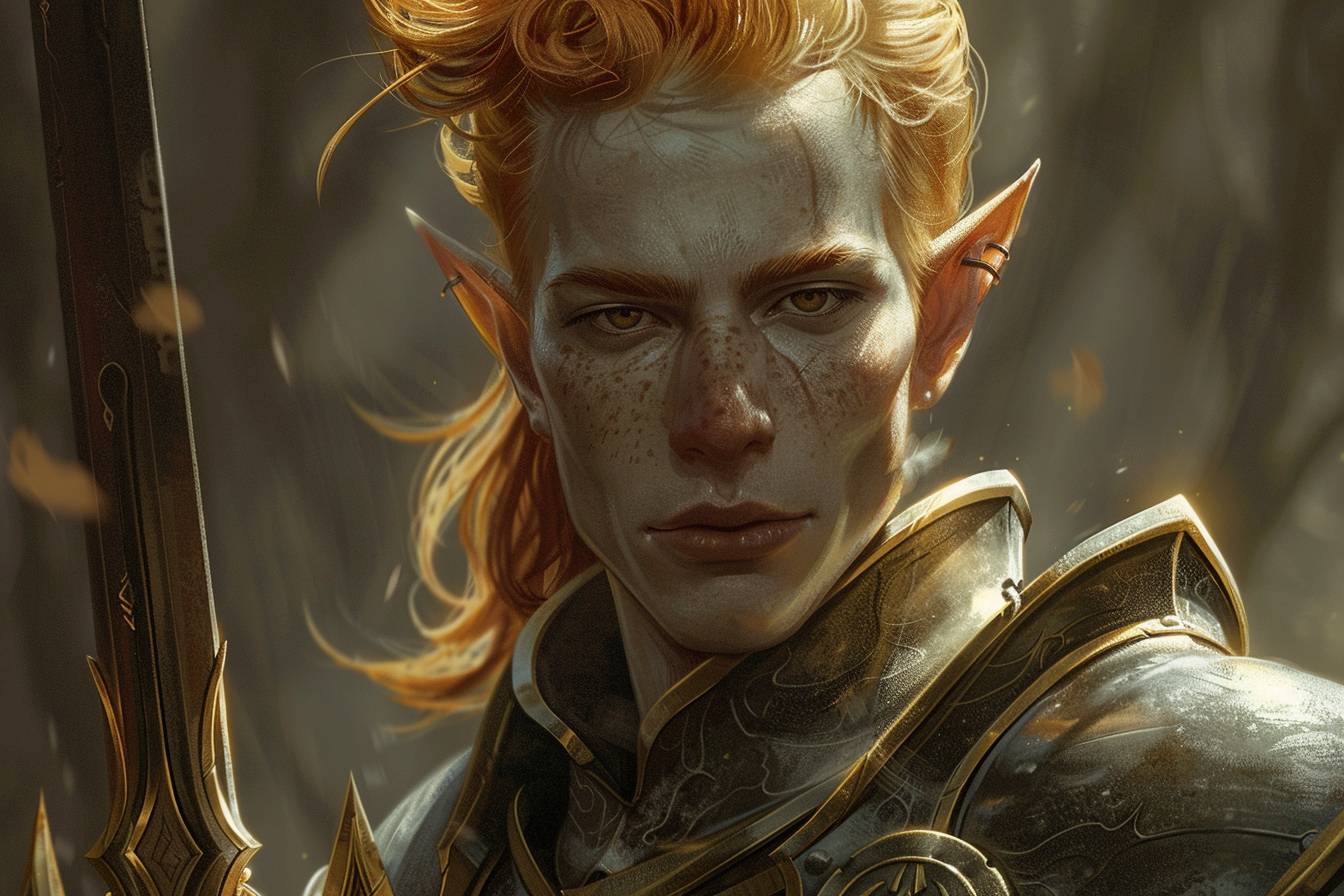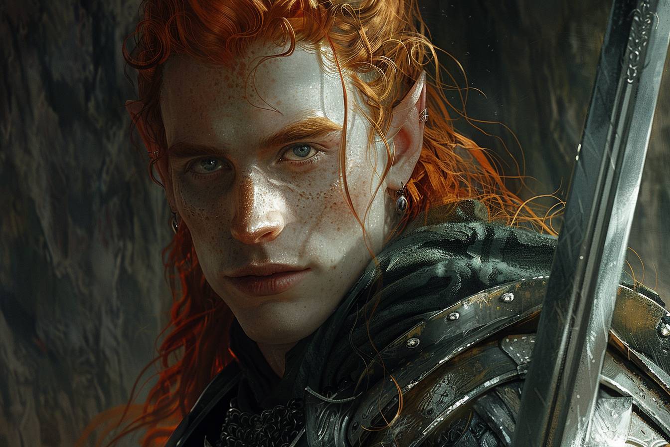 elf knight portrait, by alan m smith, in the style of light red and dark indigo, gigantic scale, handsome, adventurecore, die brücke, white and amber --ar 3:2 --seed 19340 --v 6.0