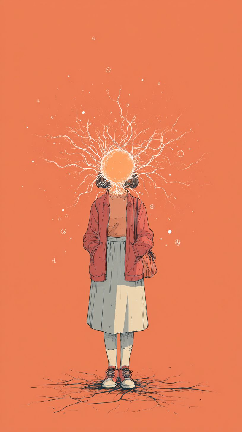 Una ilustración que invierte la conciencia de este mundo, mostrando que la conciencia existe fuera de uno mismo. Dibujada de una manera fácil de entender, linda y elegante.