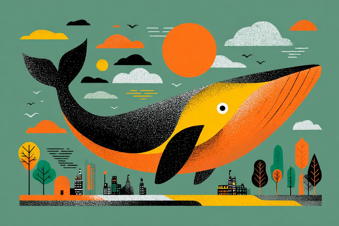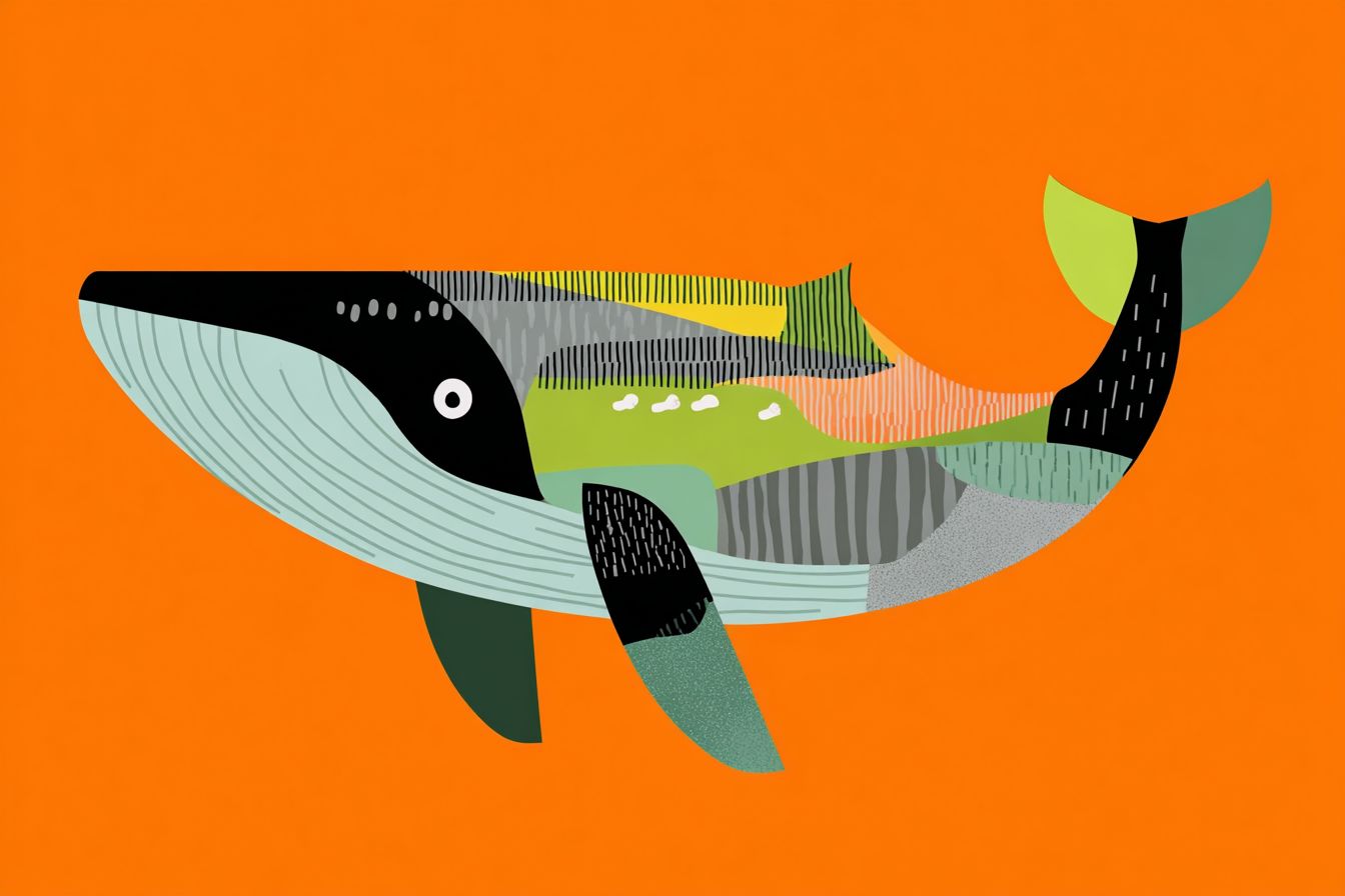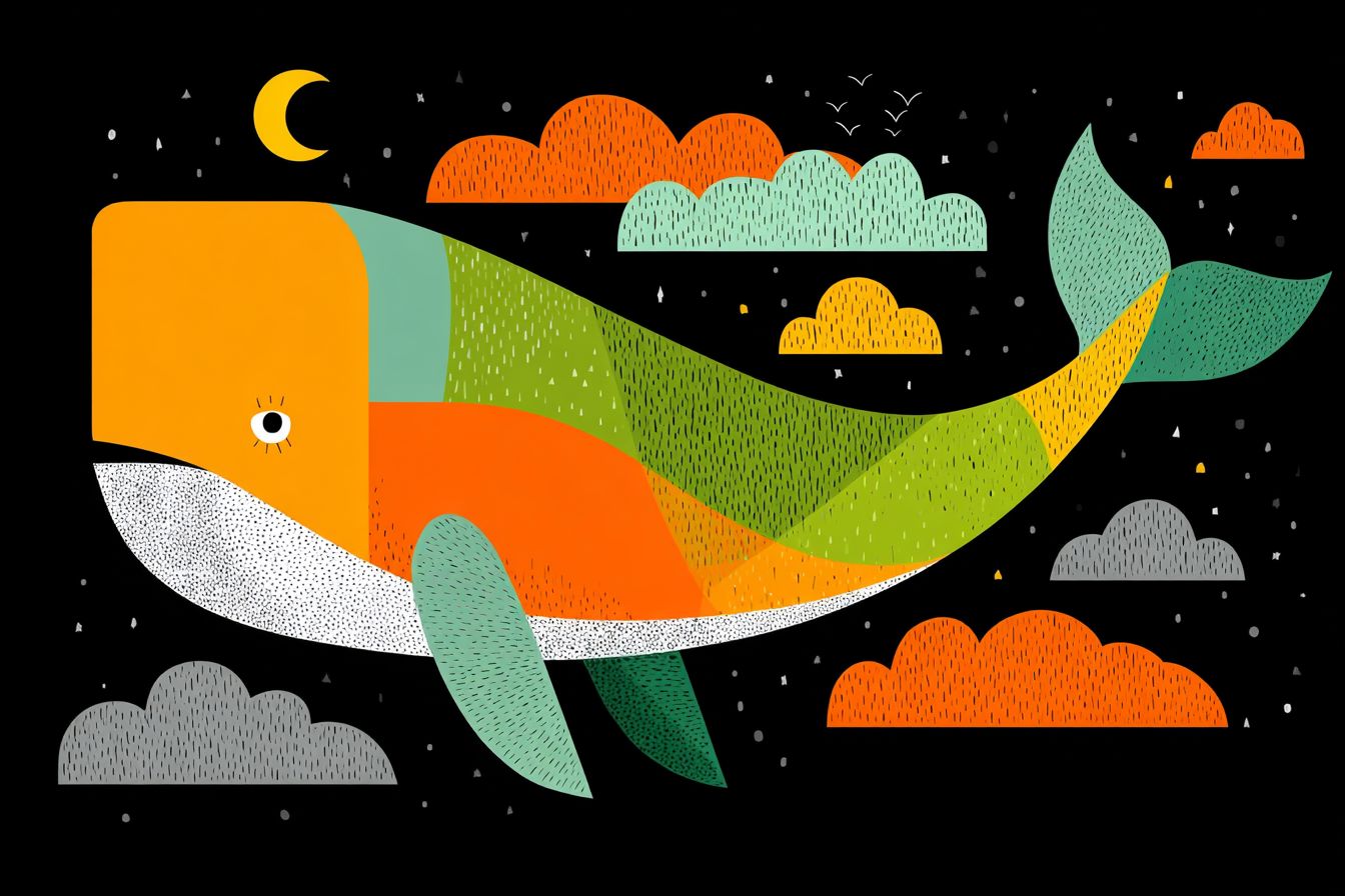 Escultura de papel en forma de ballena geométrica de bajo polígono volando por el cielo