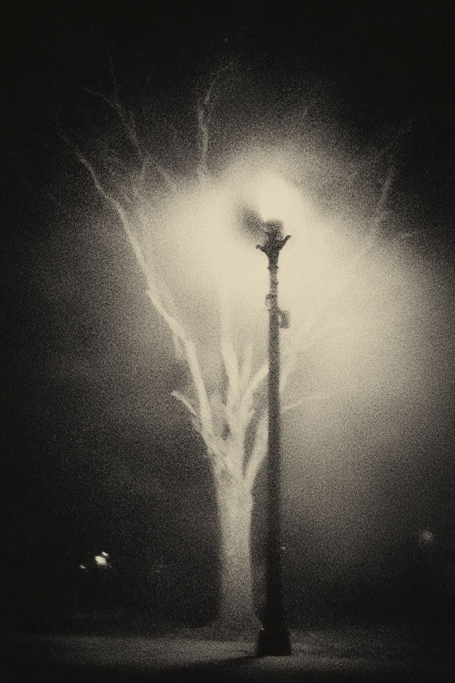 Something very peculiar collapse: the liminal signal came as an eerie luminous disturbance in the night, a sound so sinister and otherworldly that it sent shivers down the spines of even the lost souls who dared to venture near | photographic-flash photo, style of 1950s monochrome photography --chaos 17 --ar 2:3 --profile 1xtjijs --s 50 --v 7.0