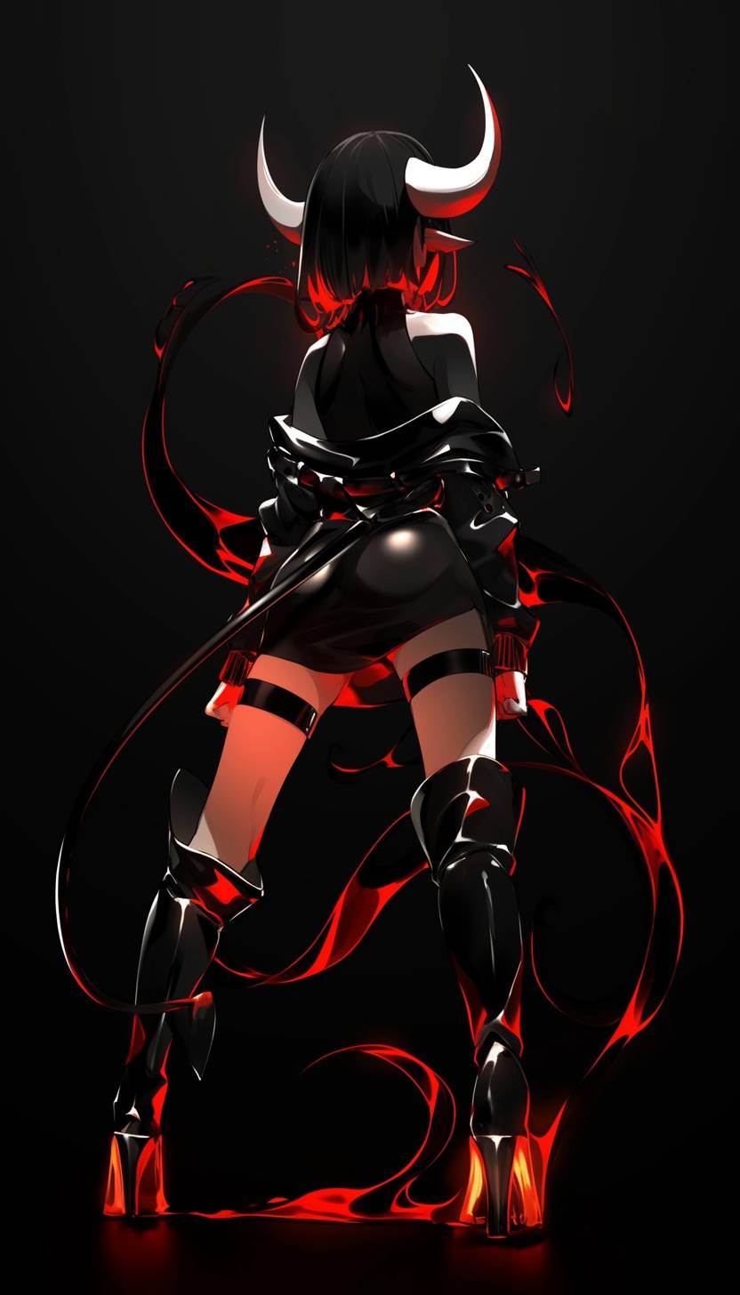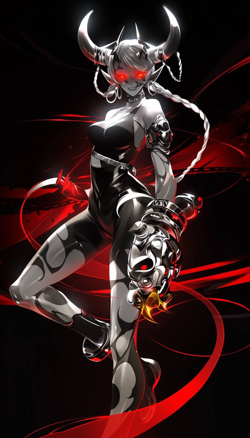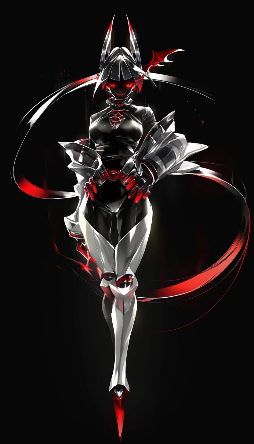 Foto de cuerpo completo de una demonio femenina enojada con manchas de tinta