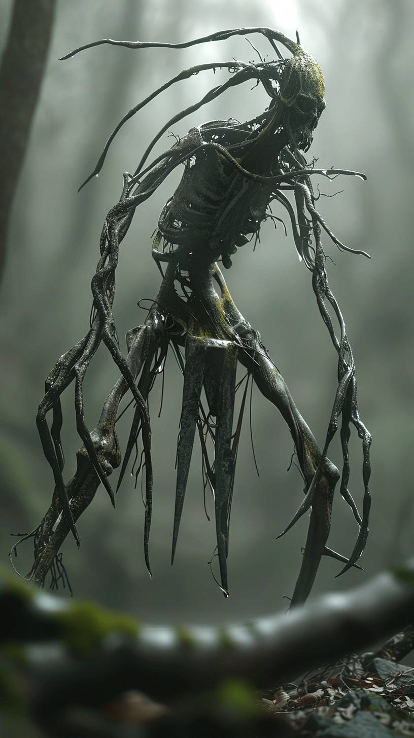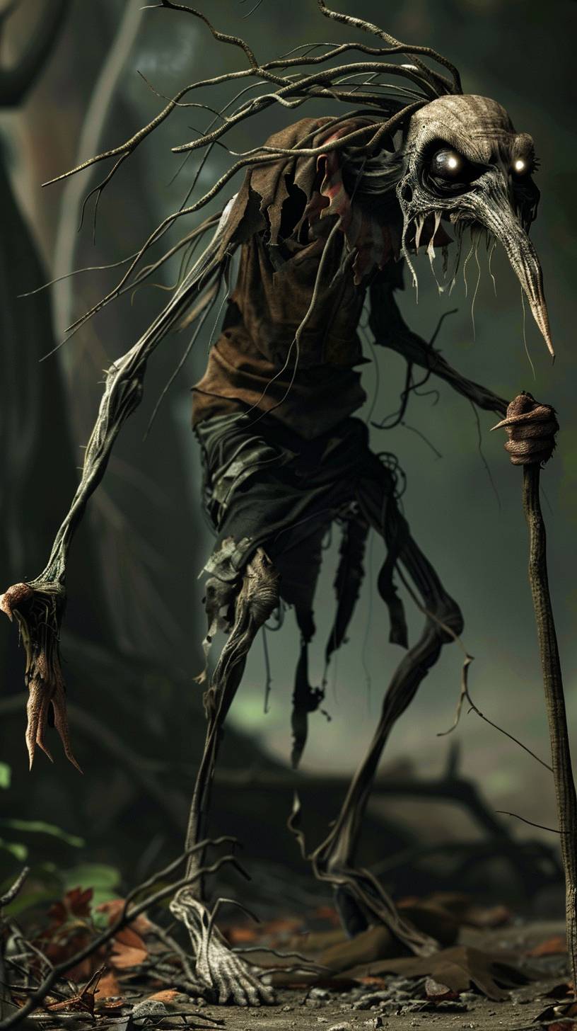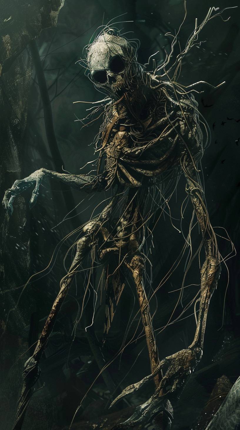 Crea una imagen hiperrealista de Fiddlesticks el Antiguo Miedo.