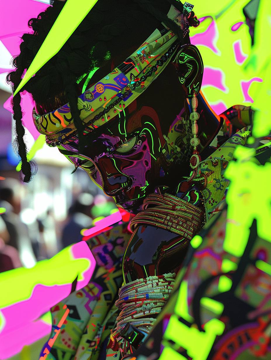 Bruja cibernética, combinando colores neón con tonos de piel naturales