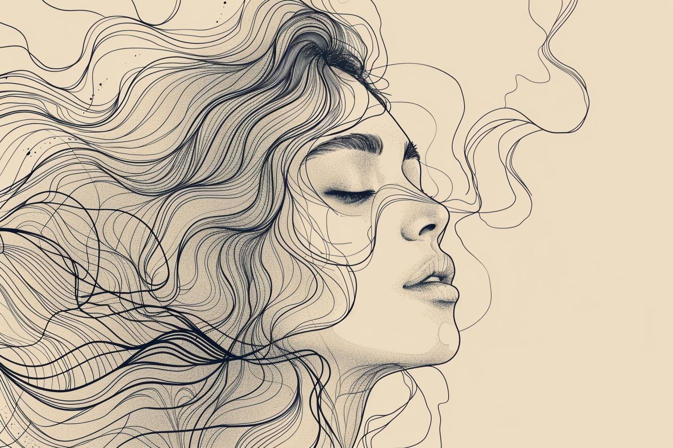 Un dibujo minimalista de una mujer usando solo 8 líneas.