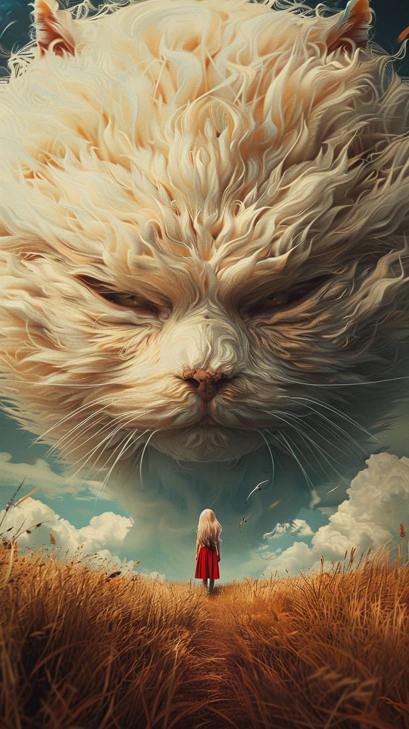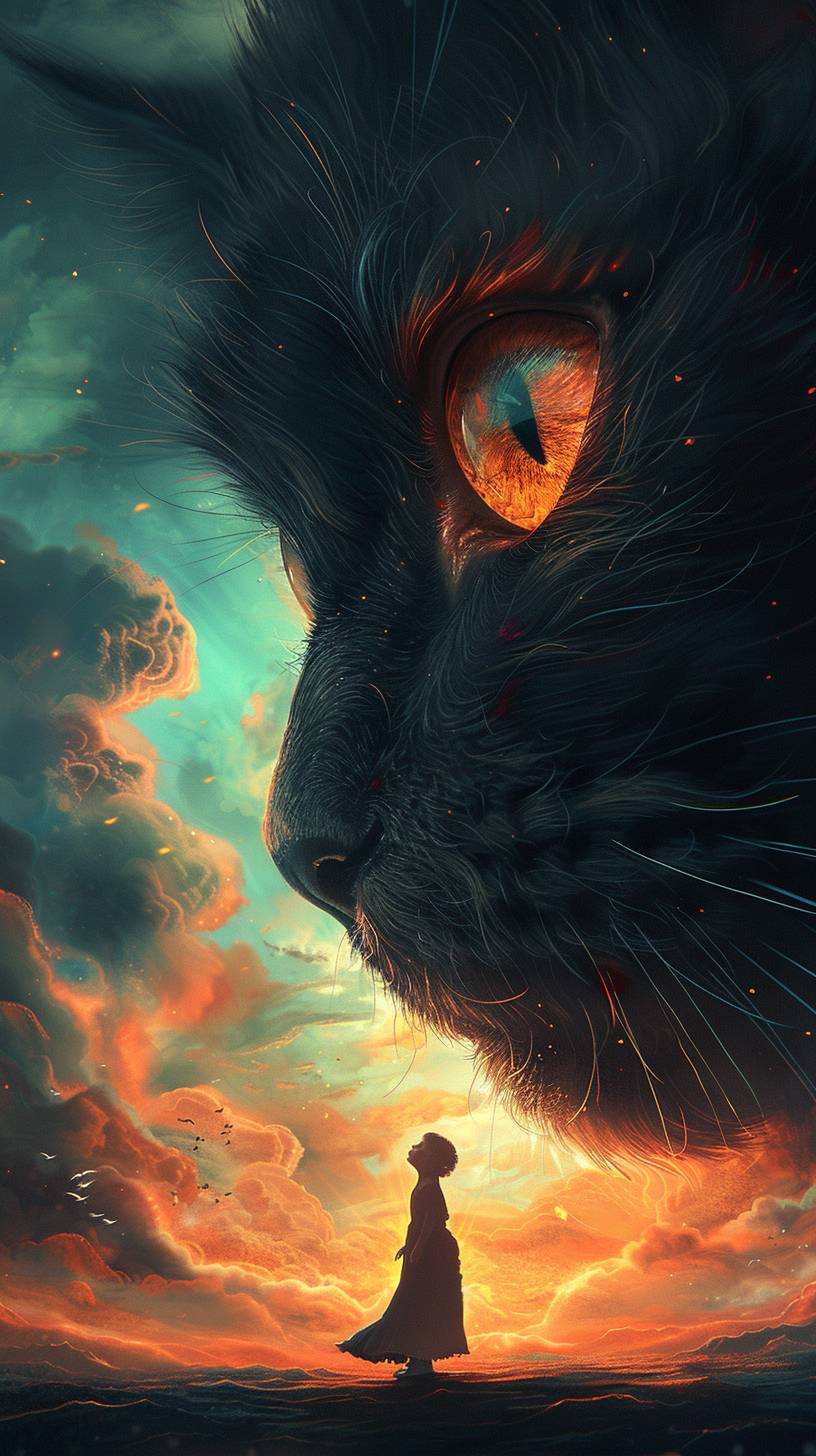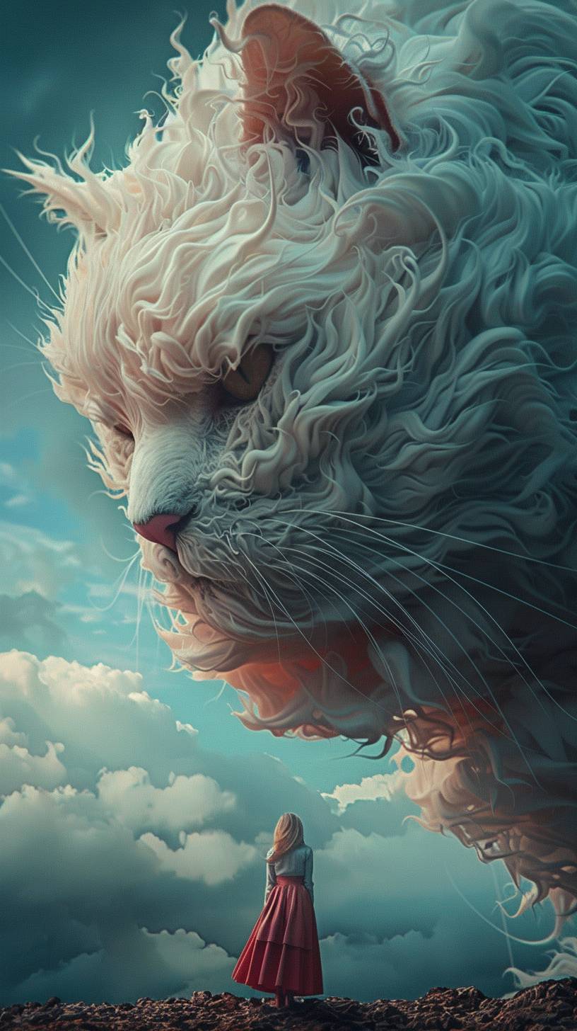 Mujer y gato gigante