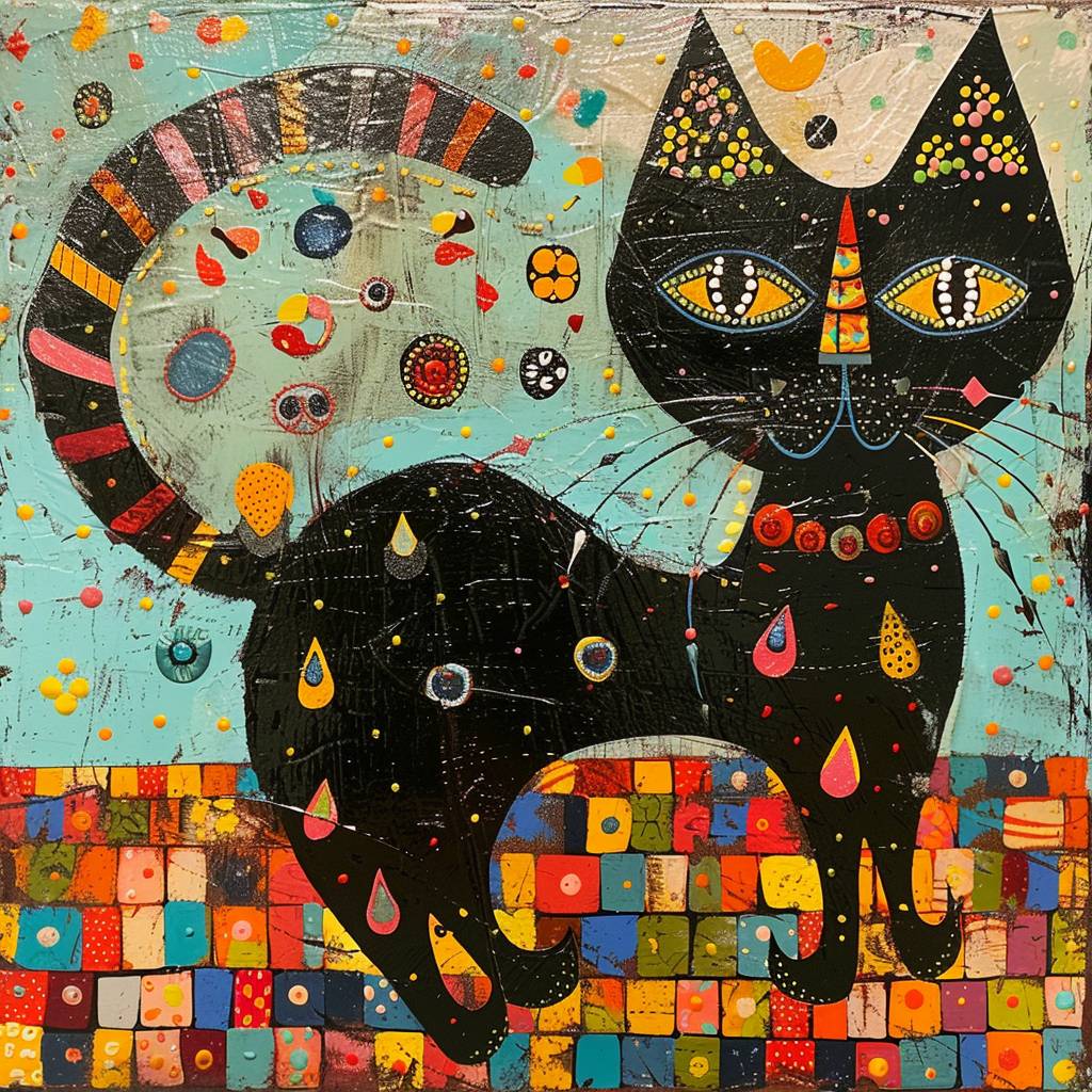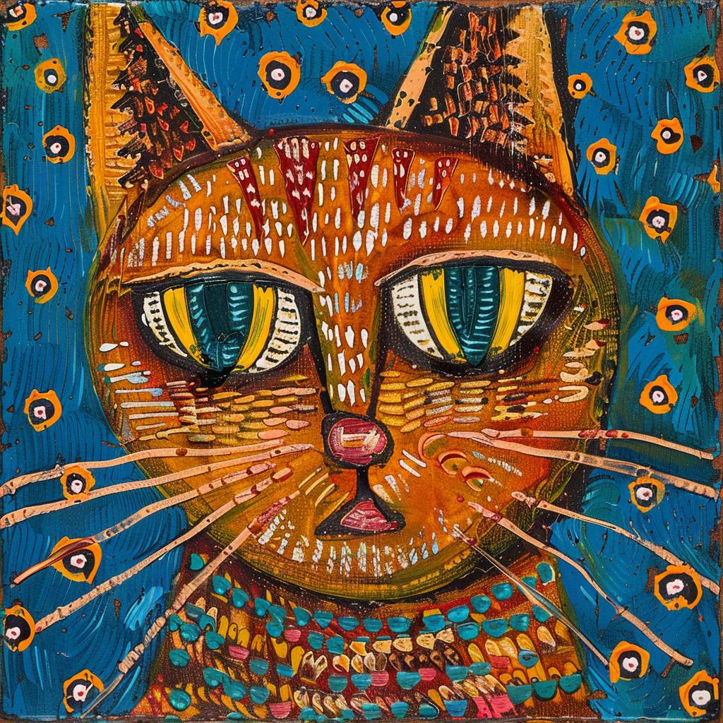 Pintura de felinos al estilo de Howard Finster