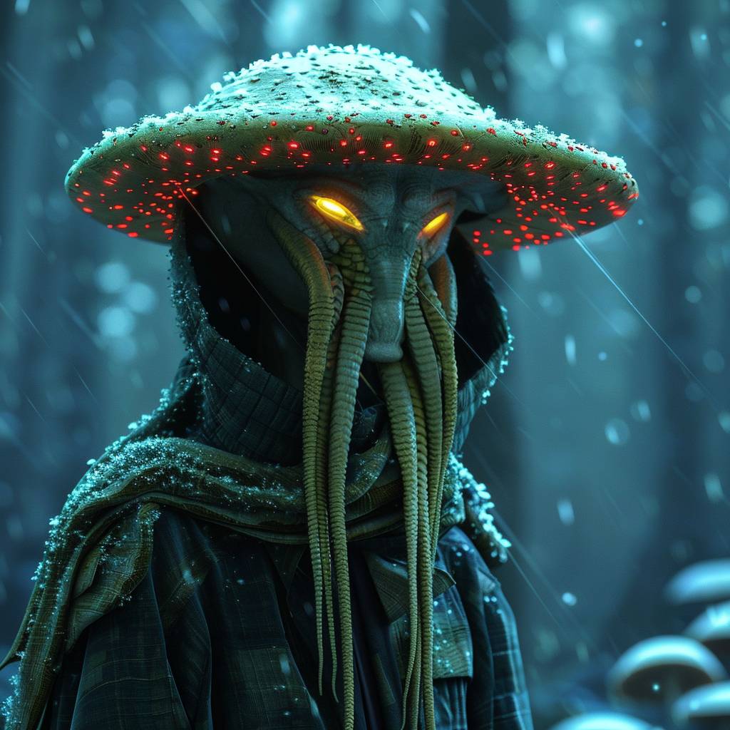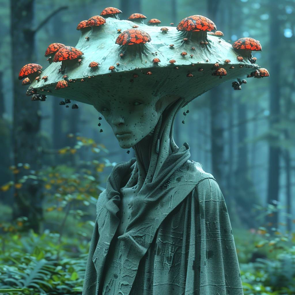 coniferous Mushroom Elf in huge acid green and red coniferous headgear and coat --sref 401556869 --s 400 --v 6.0