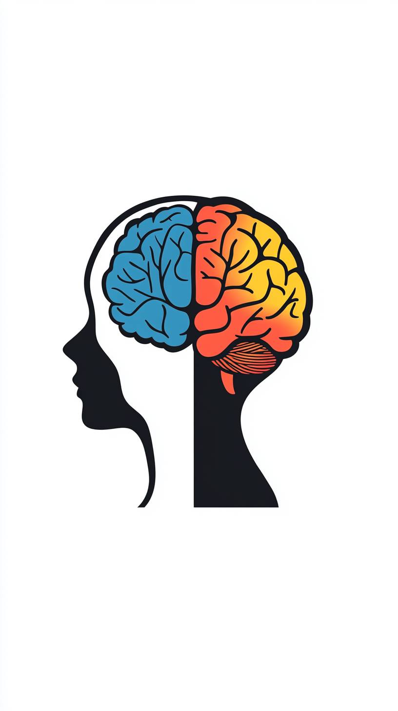 brain, head with brain, half side head, half side head, full face, full head, full head without shoulders, full image, white background, handmade style, black thin border, black thin line, vector, style flat vector, simple vector, svg, illustration, coloring style, full flat, colors, multiple colors, clean line, thin black line, high quality, black border --ar 9:16 --v 6.1