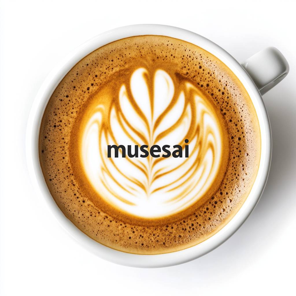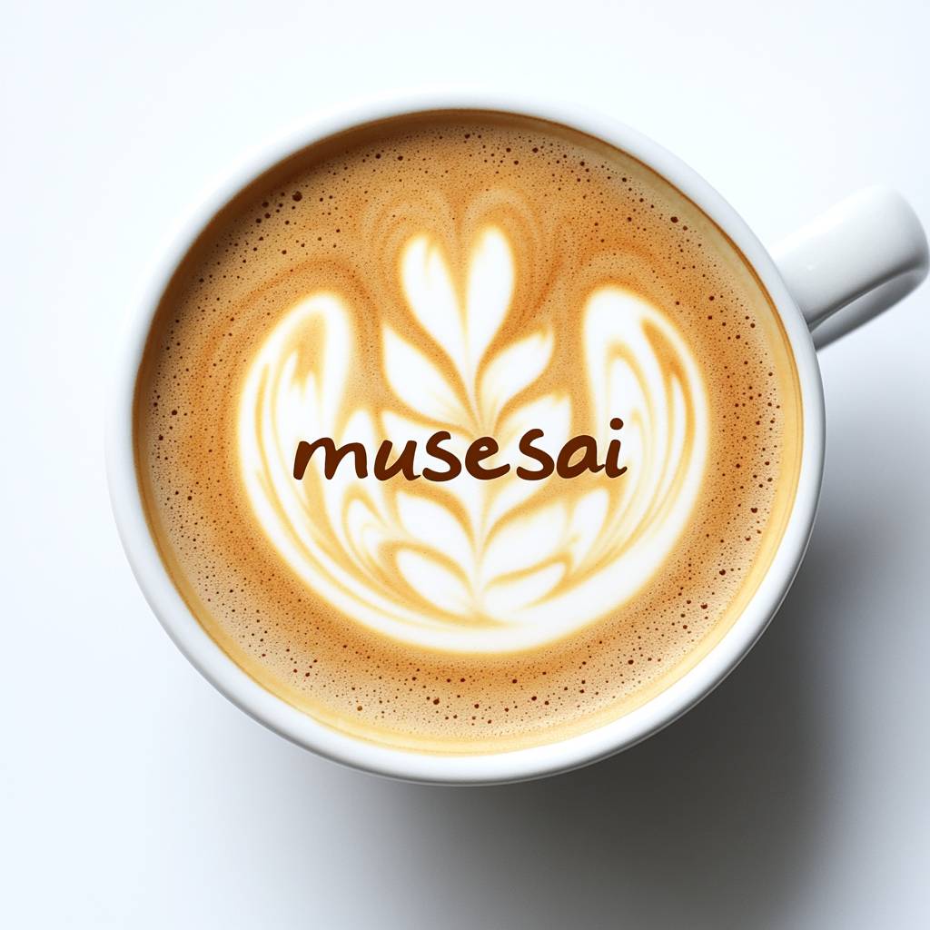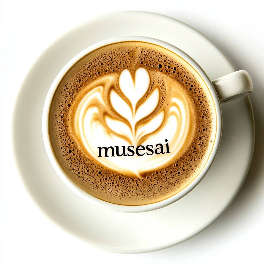 La palabra 'musesai' escrita en arte de café en una taza