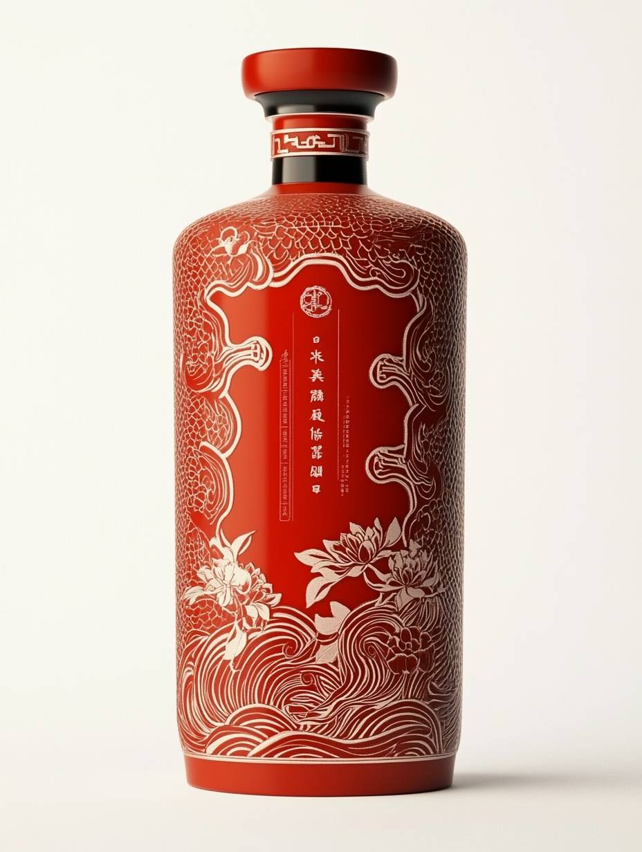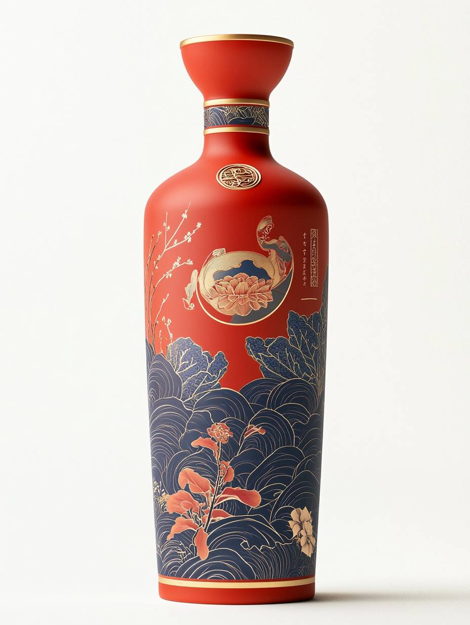 El empaque de este licor chino de alta gama se centra en la poesía de Li Bai y el antiguo espíritu imperial, siendo la botella de forma cilíndrica e incorporando líneas minimalistas modernas para presentar un contorno suave y estable. La boca de la botella tiene forma de loto, el cuerpo tiene una textura cerámica, el color principal es rojo chino, decorada con el patrón de rollo de la dinastía Tang, y con el poema de Li Bai, grabado en láser con una fuente discreta y exquisita. El diseño de la etiqueta es simple, utilizando la combinación de impresión dorada y escritura sellada, y el estilo general es una fusión perfecta de lo clásico y moderno, enfocándose en detalles extremos y alta calidad, presentando una experiencia de lujo y connotación de alto nivel.