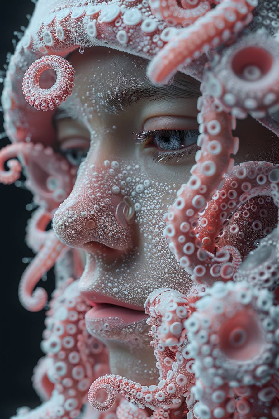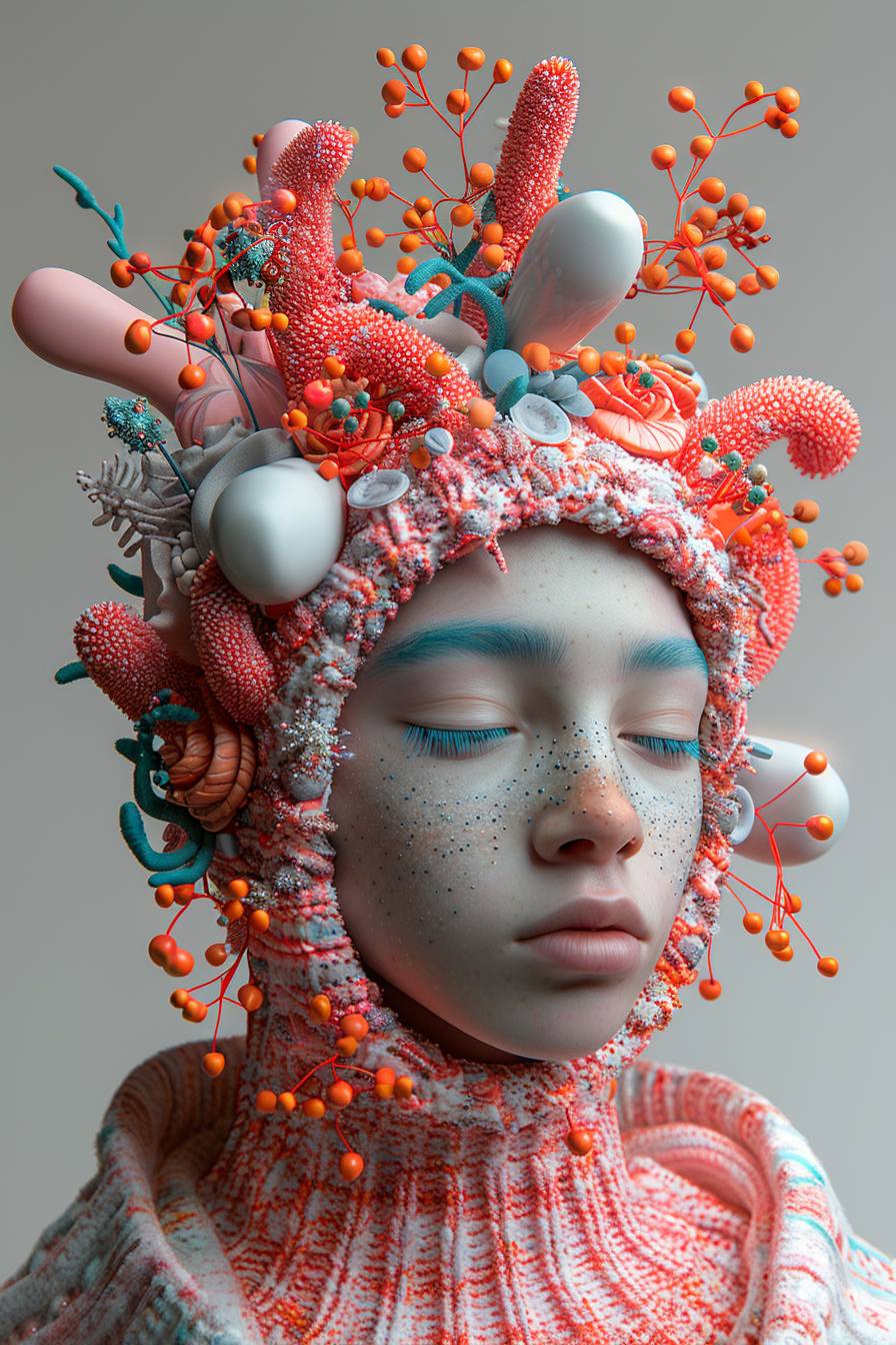 Un gros plan d'une personne portant un bonnet, montrant des formes et des styles uniques dans l'art numérique.