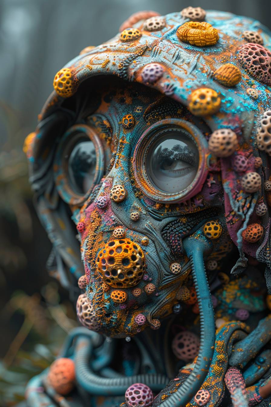 a close up of a person wearing a beanie, digital art, inspired by Kubisi art, behance contest winner, neo-dada, 3 d character concept, he is covered with barnacles, bubblegum body, walter white fortnite skin, elated gaunt onion head, portrait of machine man, high quality portrait, cute artwork, pills, full body shot hyperdetailed --s 750 --ar 2:3 --v 6.0