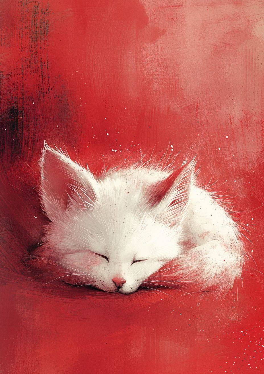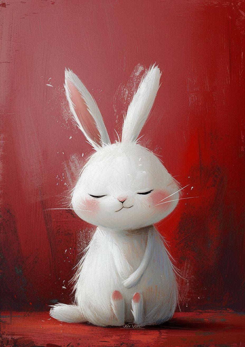 small Joyful animal by joey moya, cute, in the style of minimalistic drawings, ultrafine detail, light,bright White, Maroon background, creative commons attribution, mori kei, painted illustrations, serene faces --ar 5:7 --v 6 --stylize 250