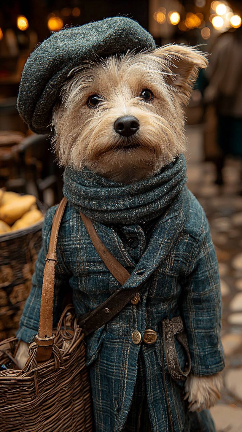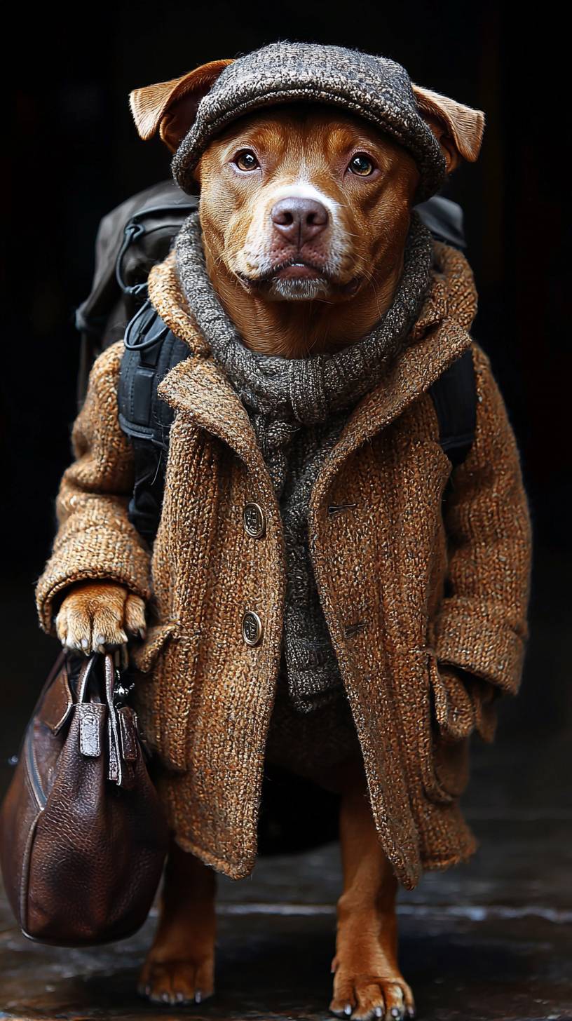 3/4 portret cute dogs dressed in classic Chanel clothes and bags, walk elegantly, sense of reality, sense of luxury, HD --chaos 40 --ar 9:16 --quality 2 --stylize 1000 --v 6.1