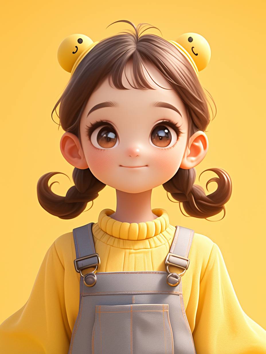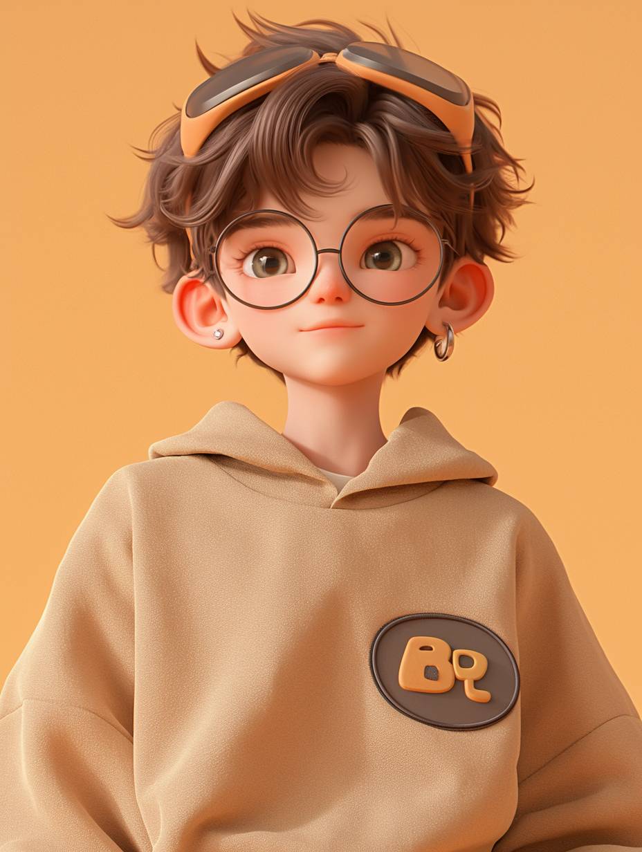 Personnage 3D mignon en tenue à la mode, semblant heureux et souriant.