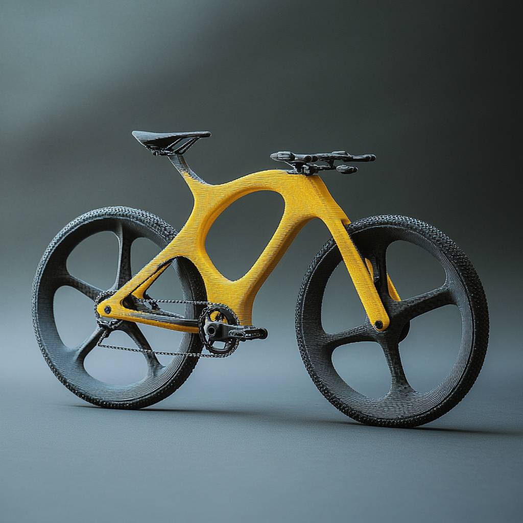 fdm printing model, ultra modern carbon bike, uplight,dark grey background, grainy contrasted photography --style raw --v 6.1