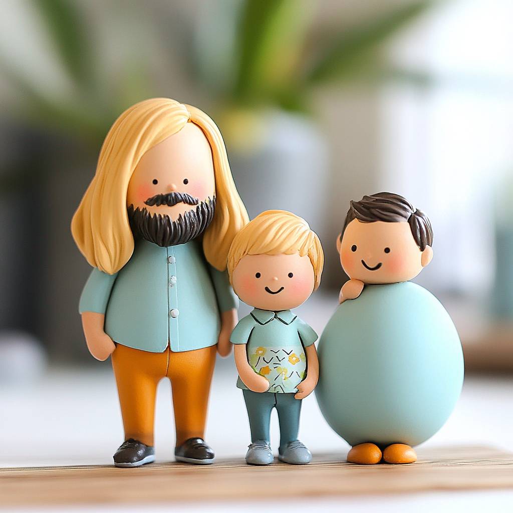 cute Easter egg figurines depicting a family consisting of a man with a short black beard and his blonde long-haired wife and their 10-year old son --v 6.1