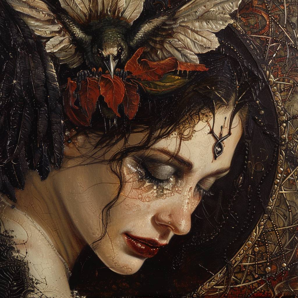 An oil painting of the true evil, in the style of trompe – l’œil illusionistic detail, blink – and – you – miss – it detail, wiccan, lithograph, gothic dark and macabre, romantic goth, gothic dark and ornate --v 6.0