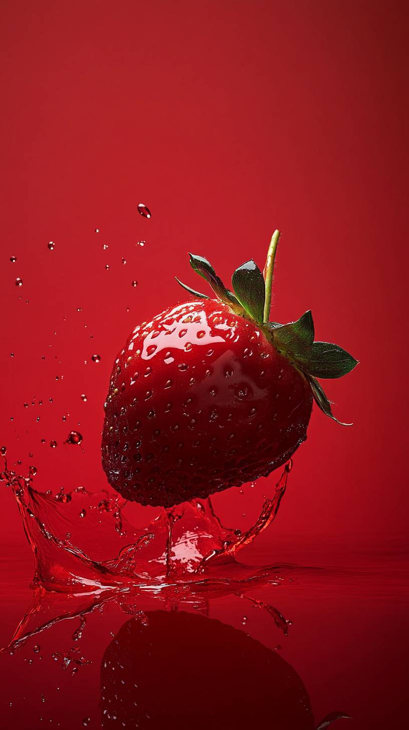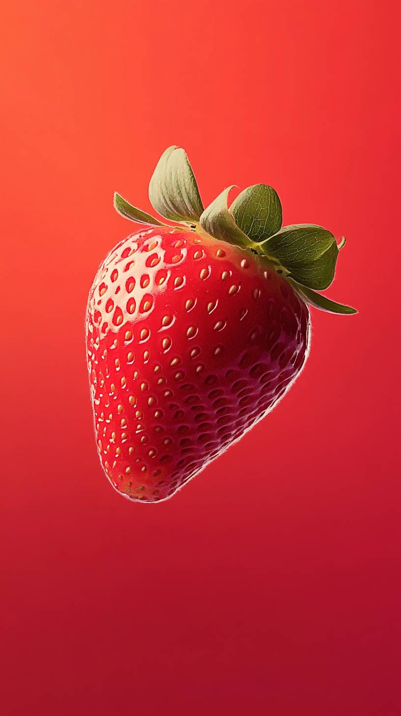 Une délicieuse fraise avec un fond rouge vibrant