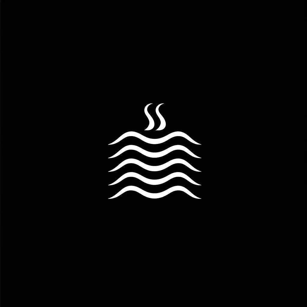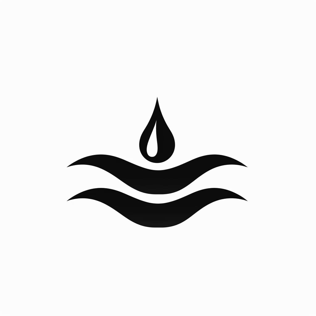 Un design de logo minimaliste en noir et blanc lié à l'eau, avec des lignes simples et un style 2D plat.