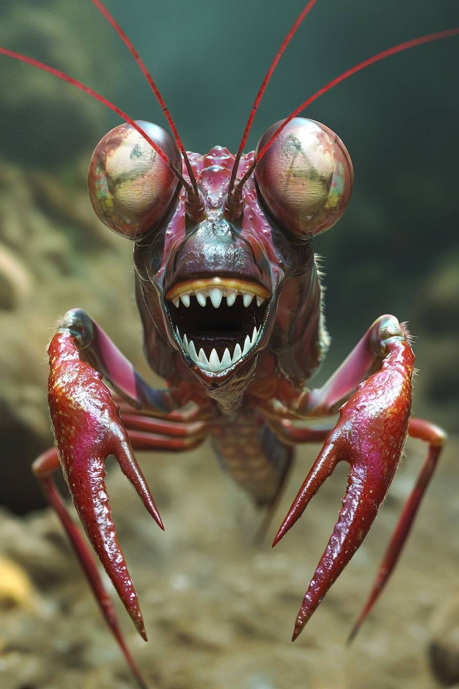 A cartoonish exaggerated mantis shrimp rendered in gamecube graphics, hd expansion pack, remastered, realistic but stylized with hyperrealistic detail --ar 2:3 --quality 2 --style raw --profile a937535 --stylize 200 --v 6.1