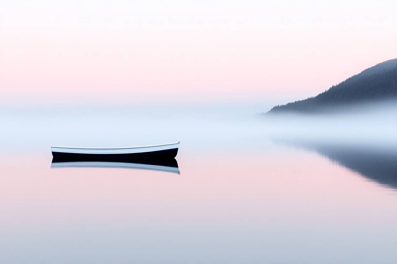 A tranquil lakescape with soft, blurred reflections in the water. Muted pastel sky blending seamlessly with the surface, gentle ripples distorting the reflection. Subtle atmospheric depth, minimal and poetic, evoking a dreamlike, meditative mood. A perfect balance of stillness and motion. --ar 3:2 --stylize 1000 --profile msj9o7e