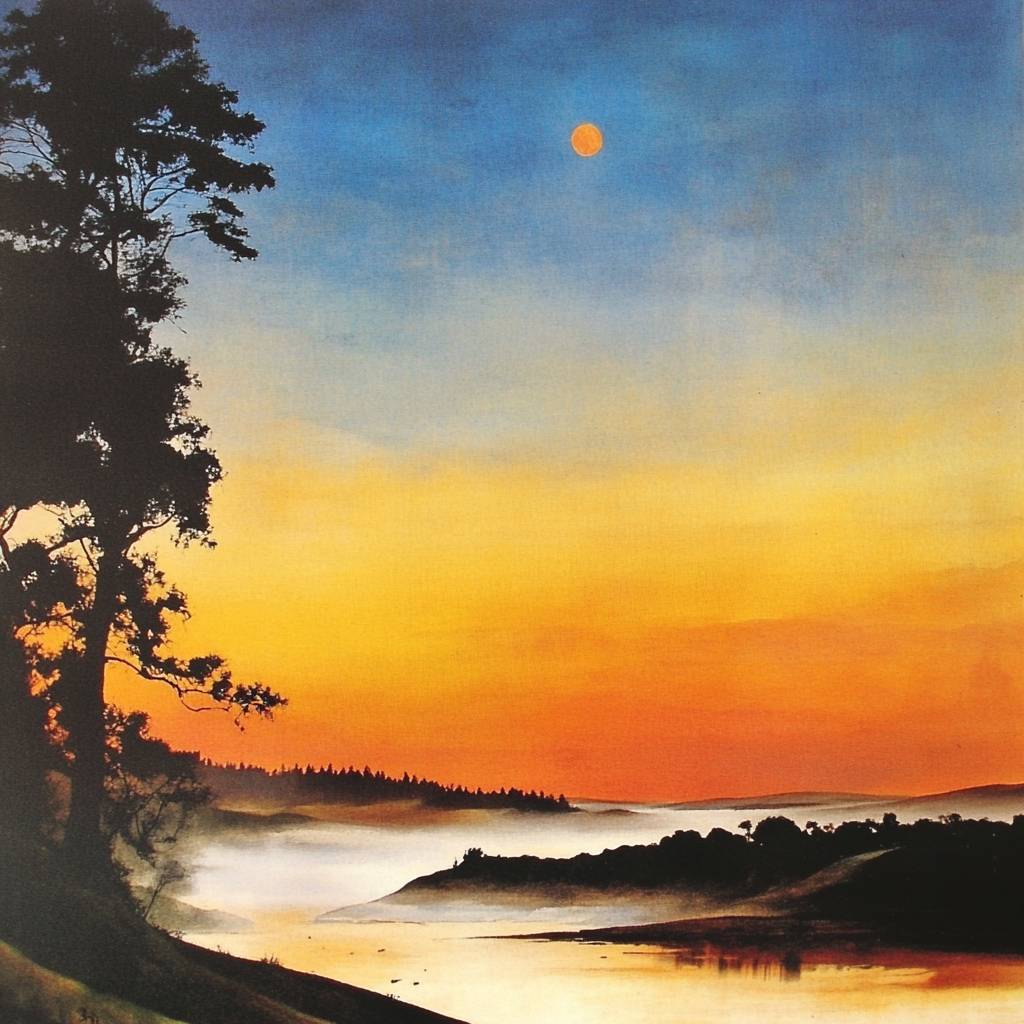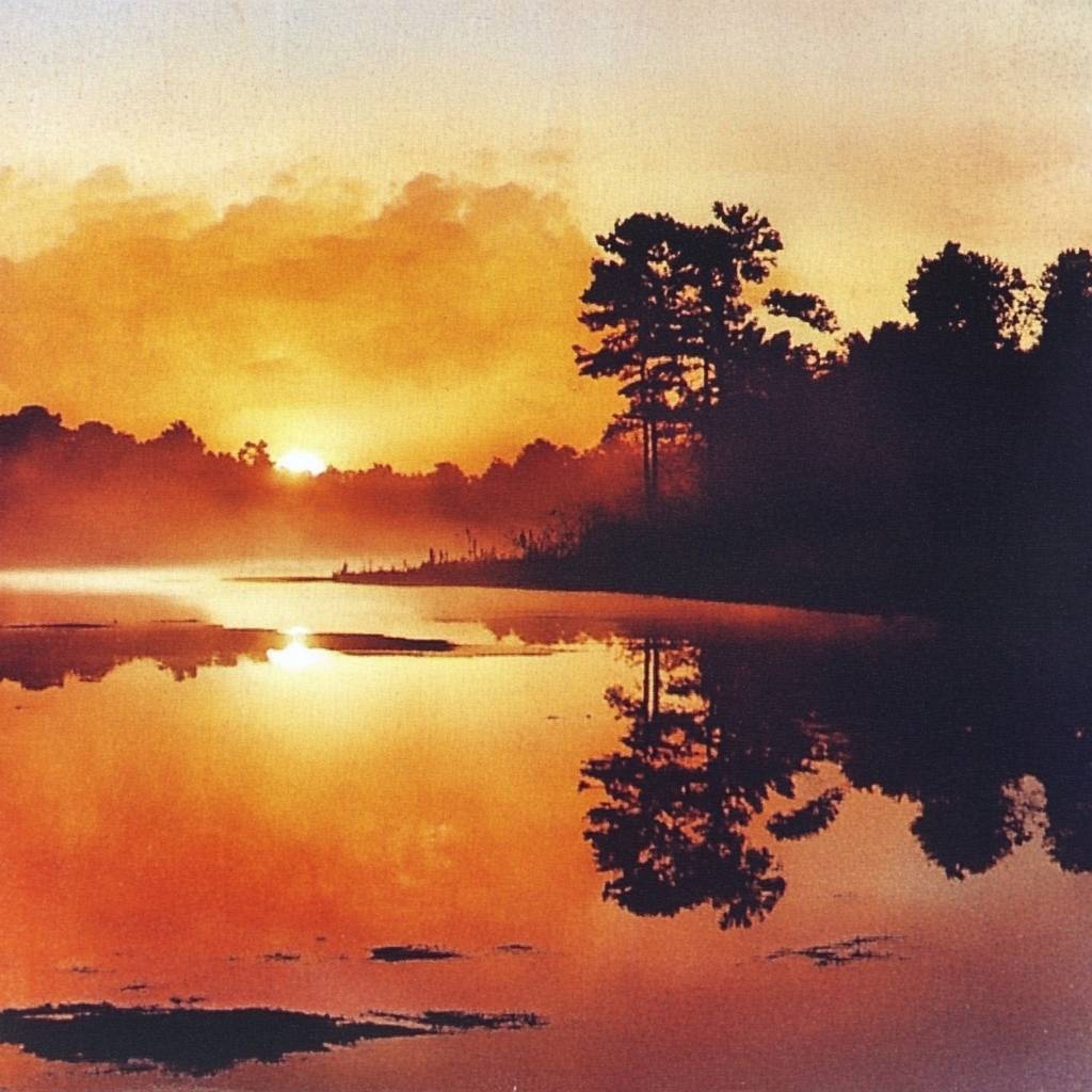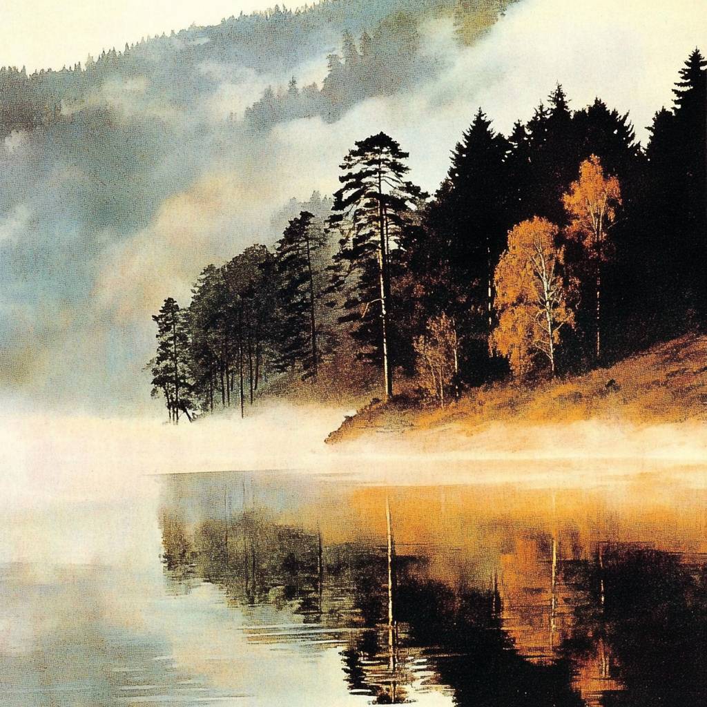 Une photographie réaliste de paysage à l'aube tranquille