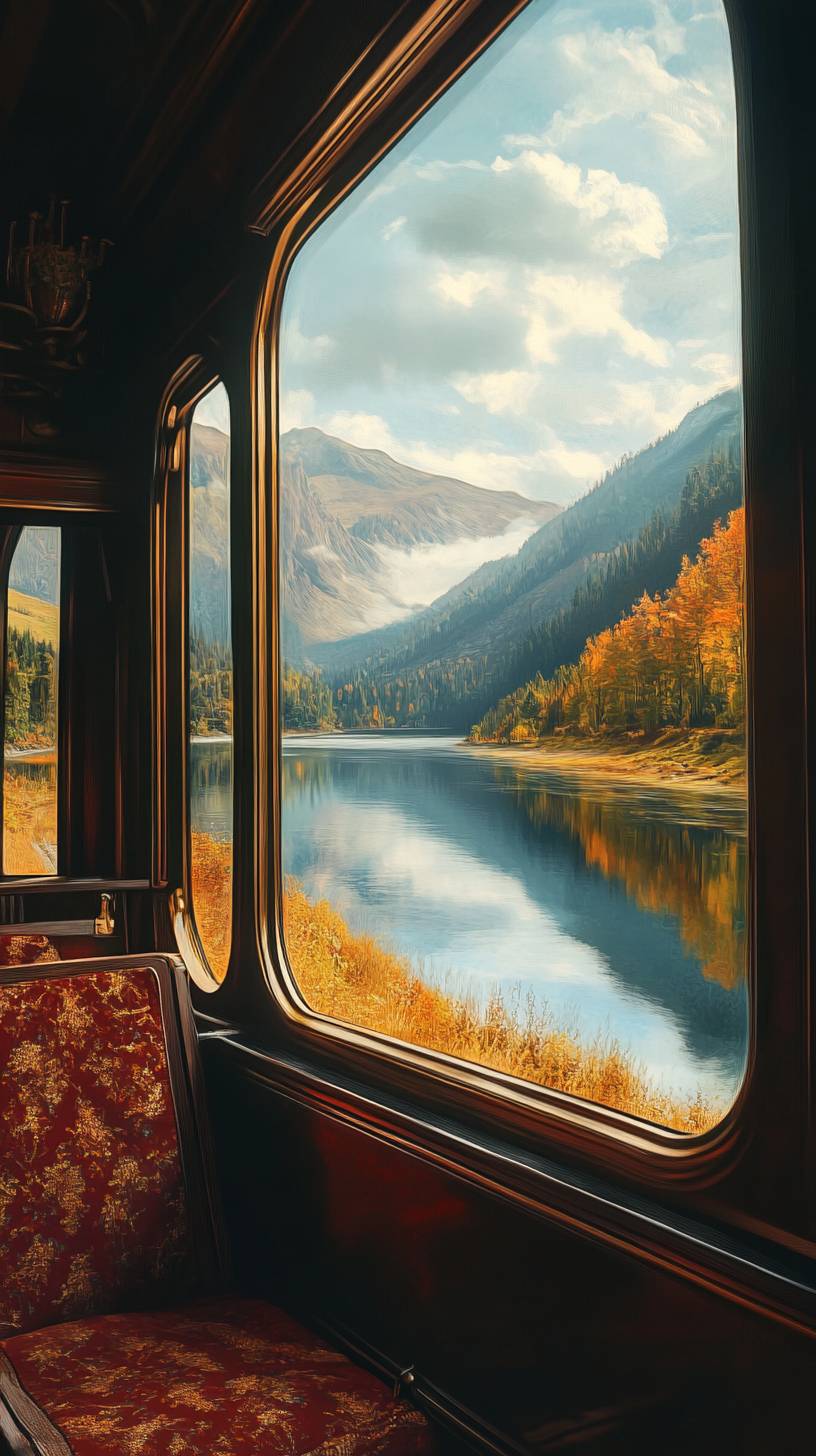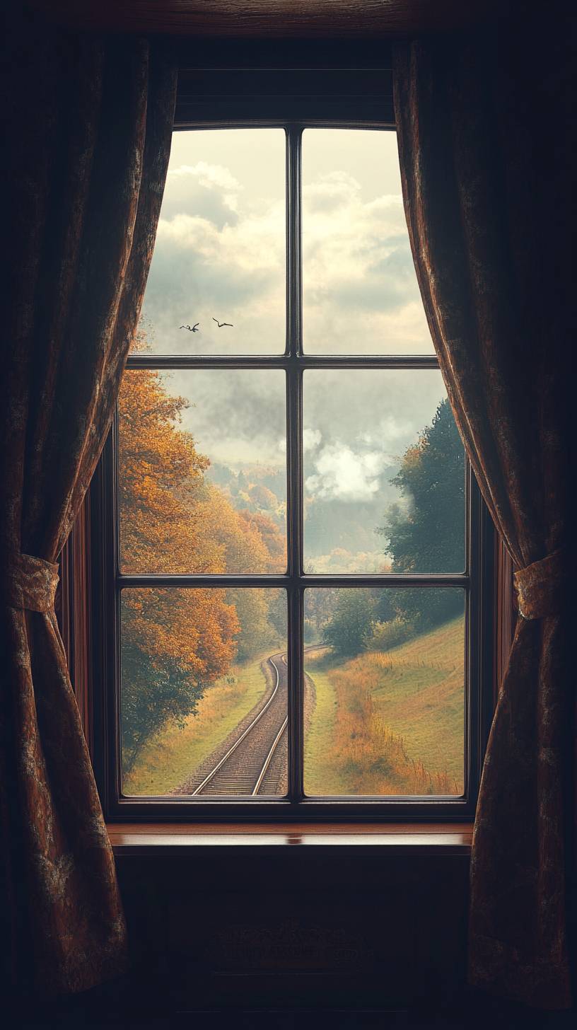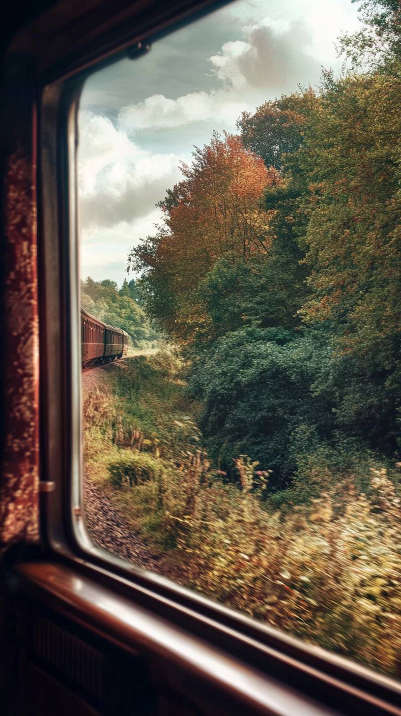 Realistic Window View, English Idyllic, Harry Potter Style, On the Way to Hogwarts School of Witchcraft and Wizardry, Looking Out the Window on a Redskins Train, with a Sense of Magic, 4k HD --ar 9:16 --v 6.1