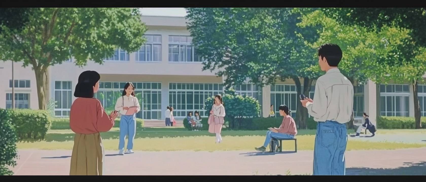 Des étudiants sur le campus discutent sur le terrain de jeu.