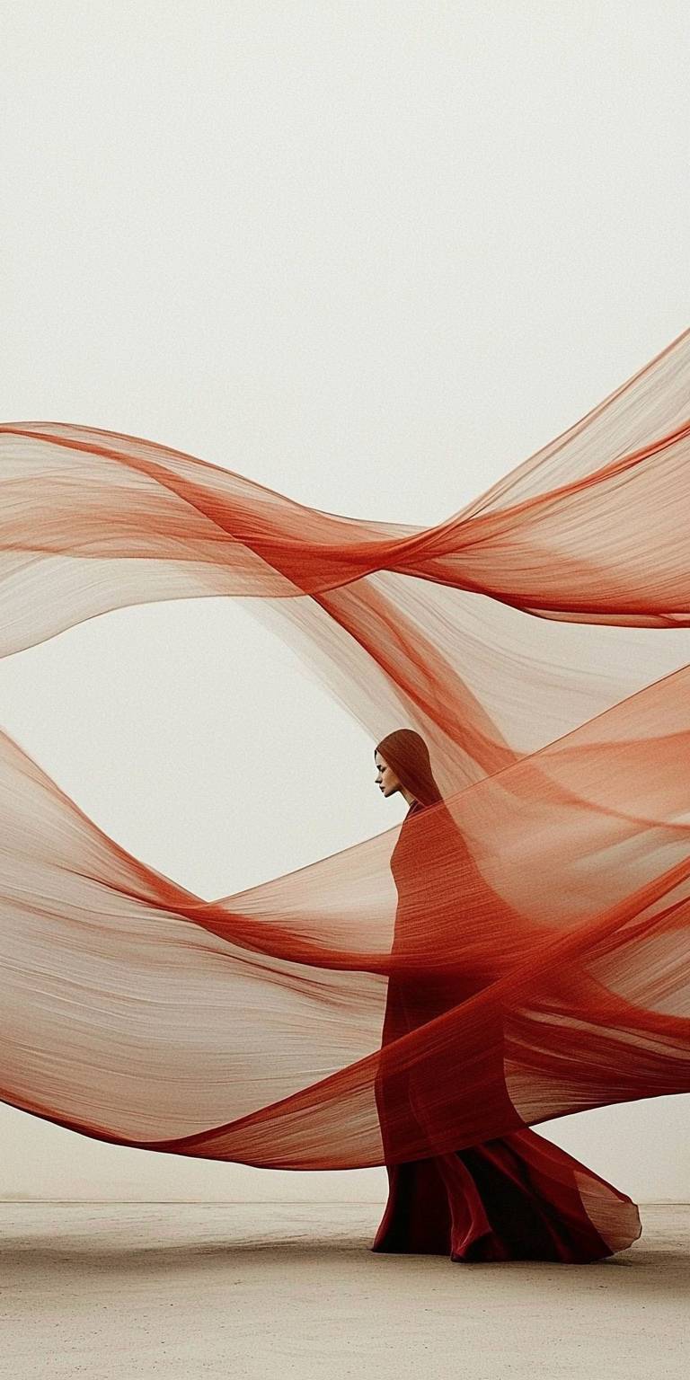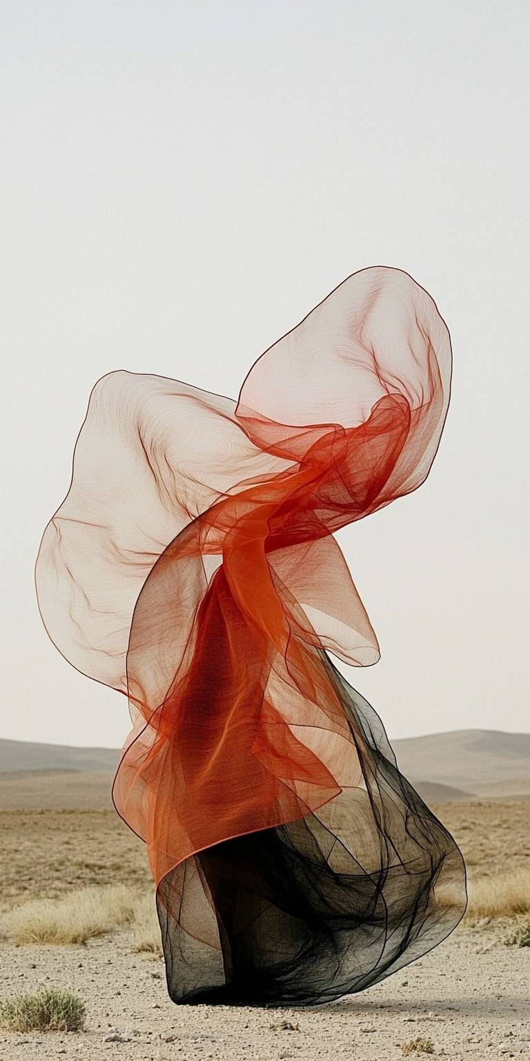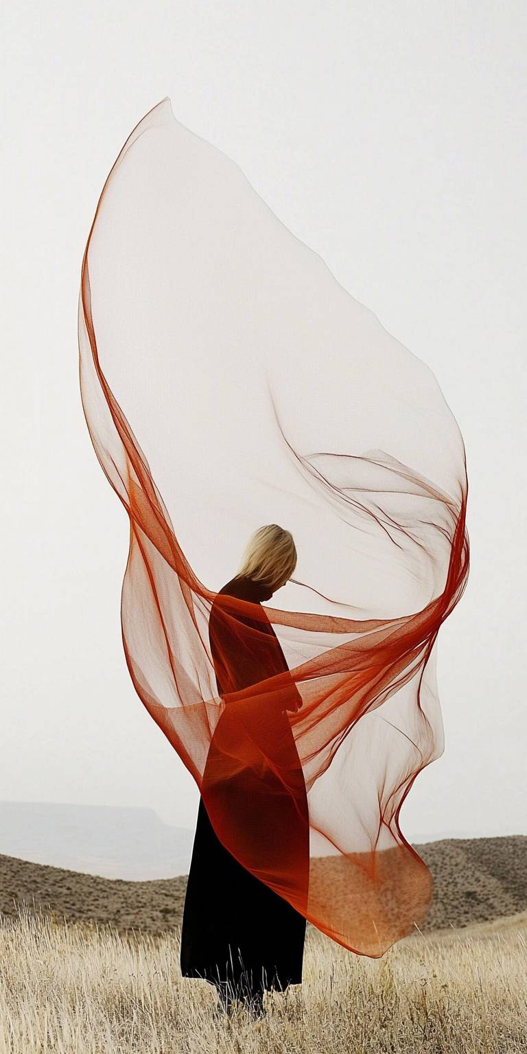 Very long orange ribbons blowing in the desert wind, minimalism magazine cover photography --ar 1:2 --q 2 --style raw --sref 1520575179::1 2577280164::2 --p i1voofg --sw 100 --s 90 --v 6.1