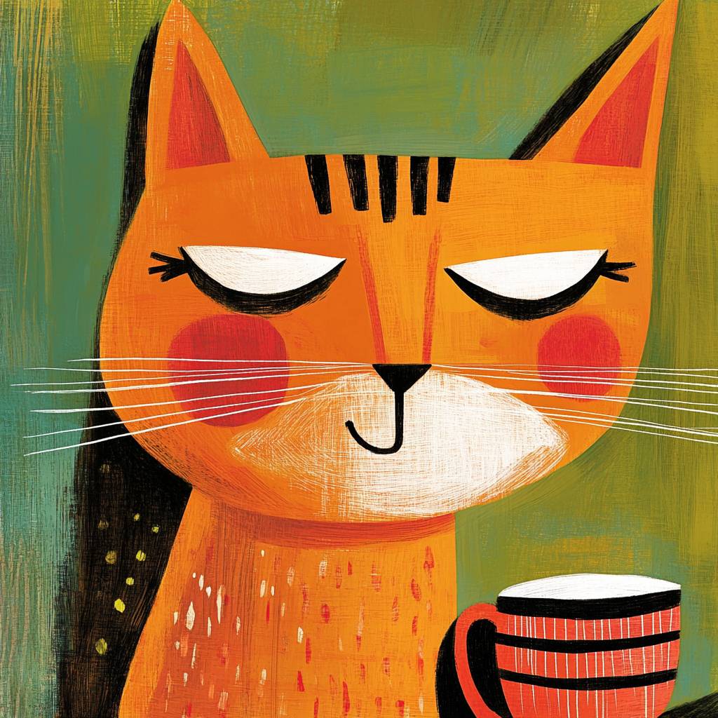 Logo de café pour chats dessiné à la main par des enfants dans un style minimaliste