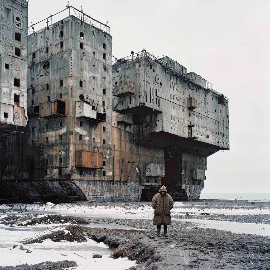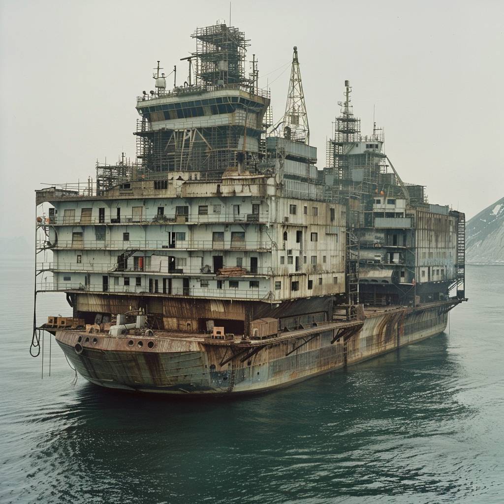 Gigante forteresse flottante dans le port de la mer du Nord.