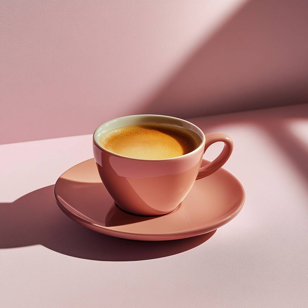 Une photo produit d'un espresso sur un fond de couleur unie lumineuse avec un éclairage lumineux, semblable aux marques contemporaines de vente directe au consommateur.