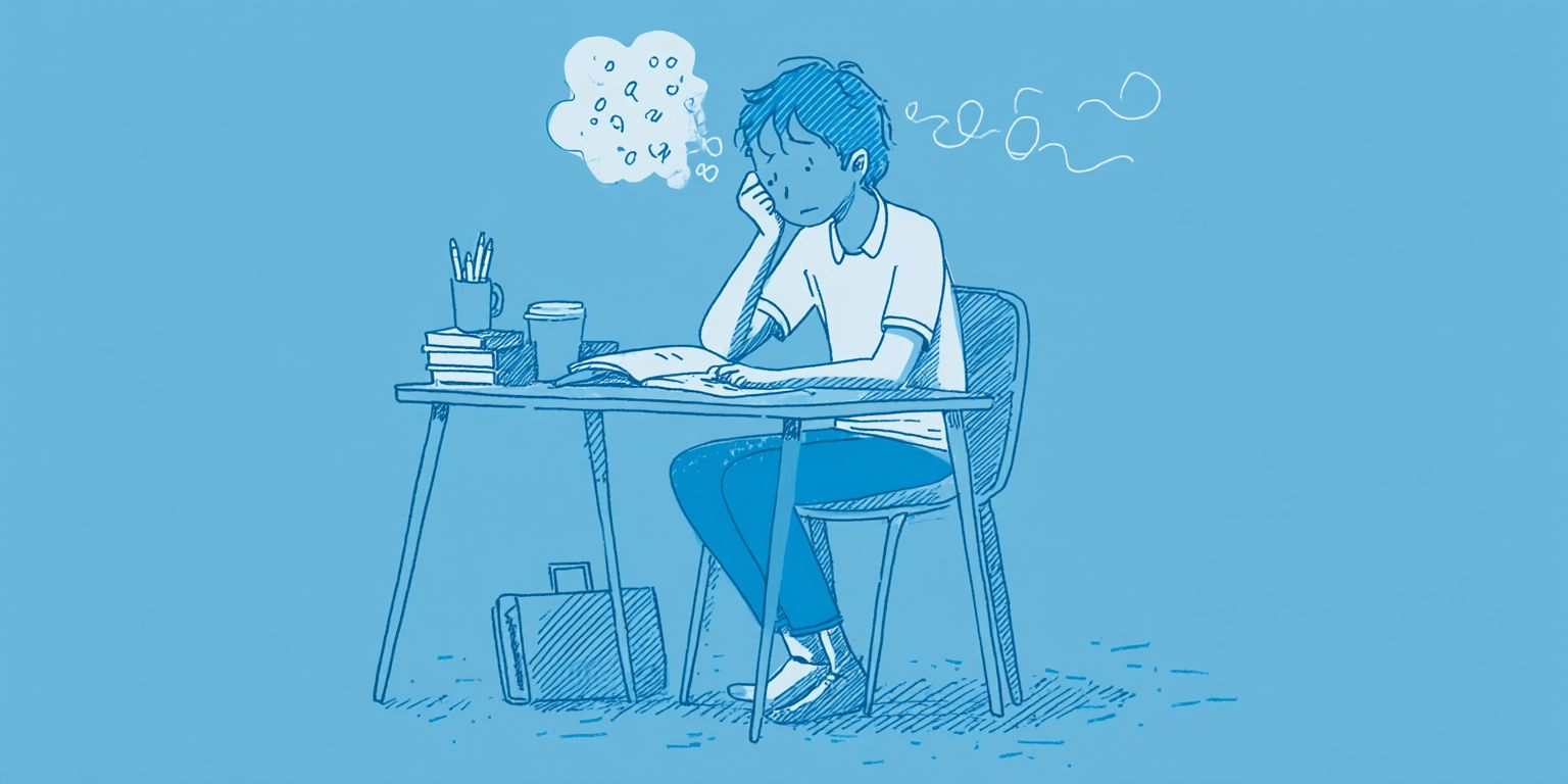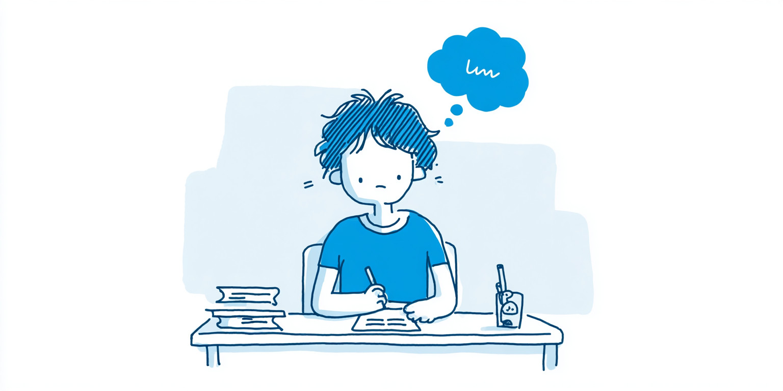 Illustration minimaliste d'un étudiant utilisant des techniques de gestion de l'anxiété pendant un examen
