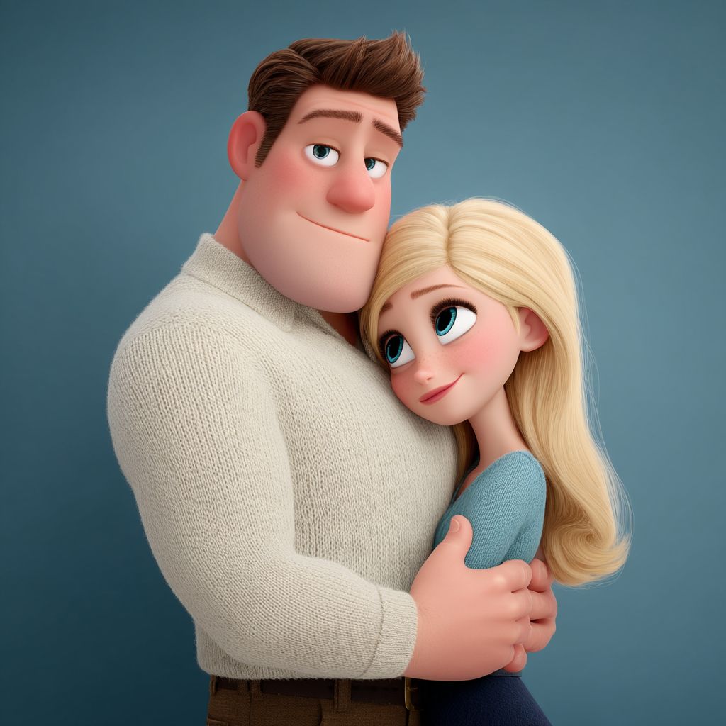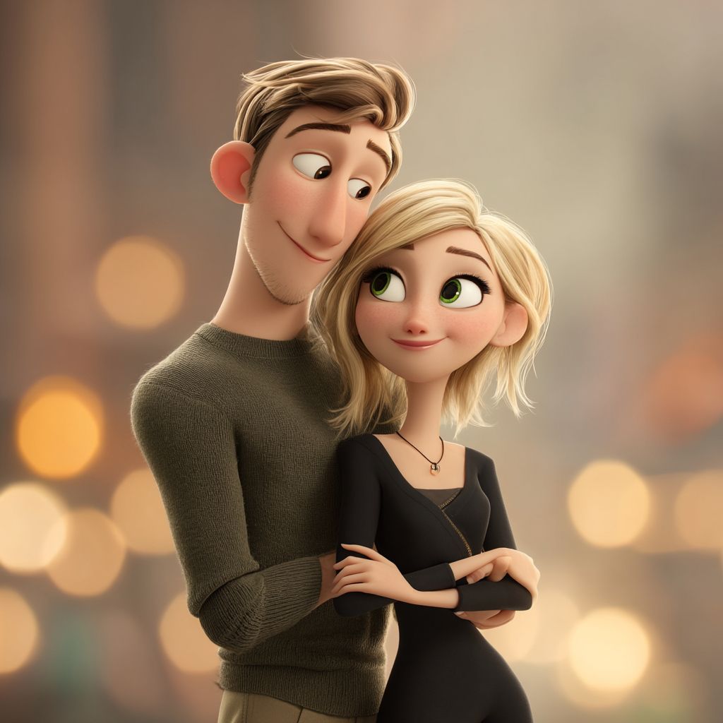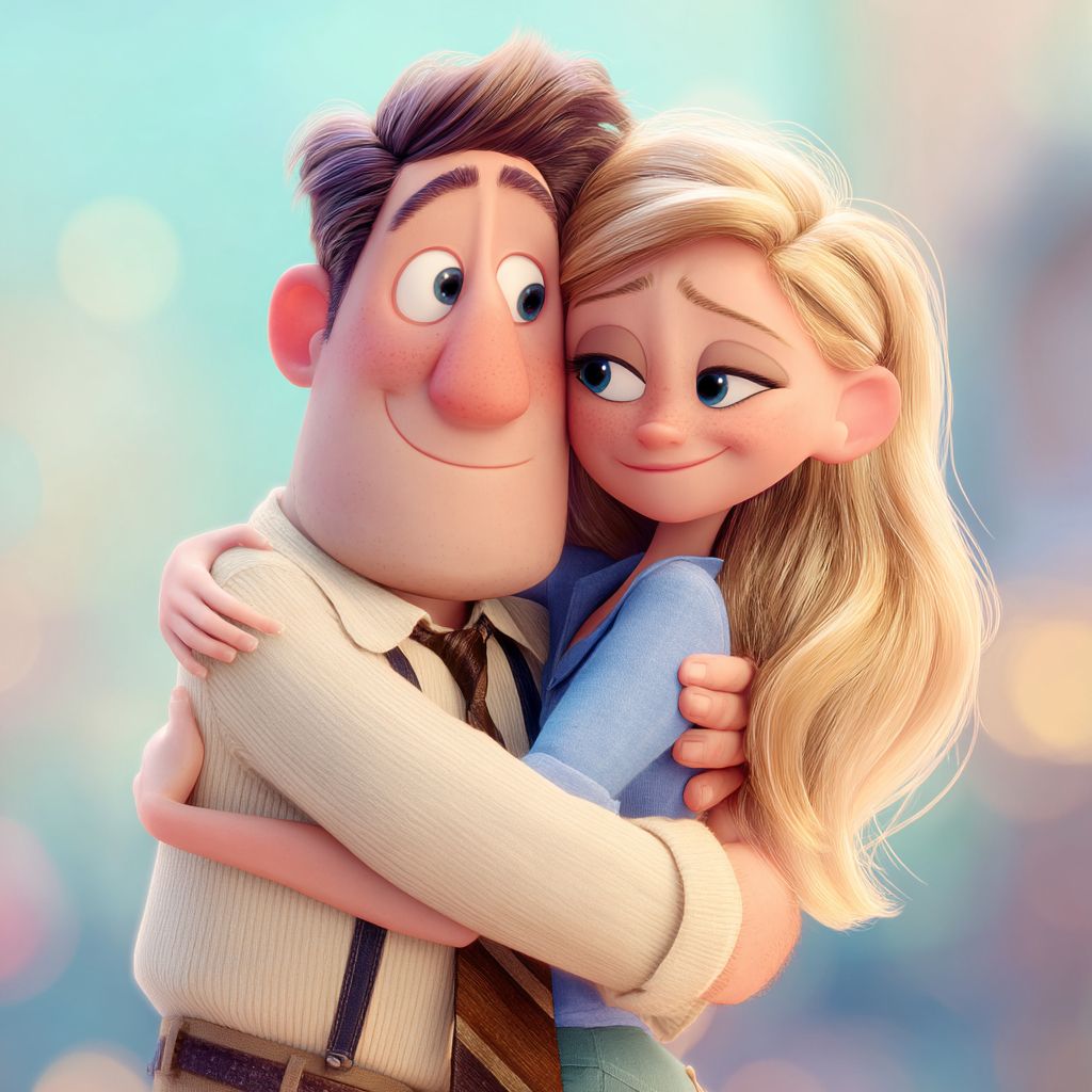 Un homme brun de 30 ans et une femme blonde de 30 ans s'enlacent