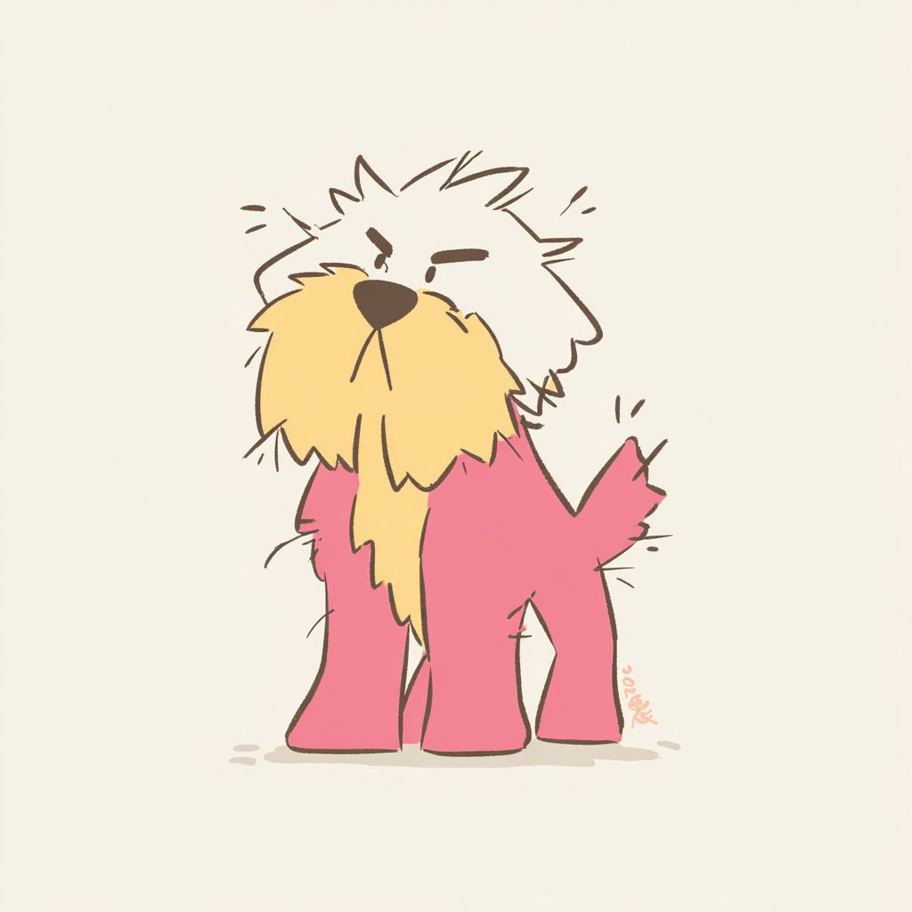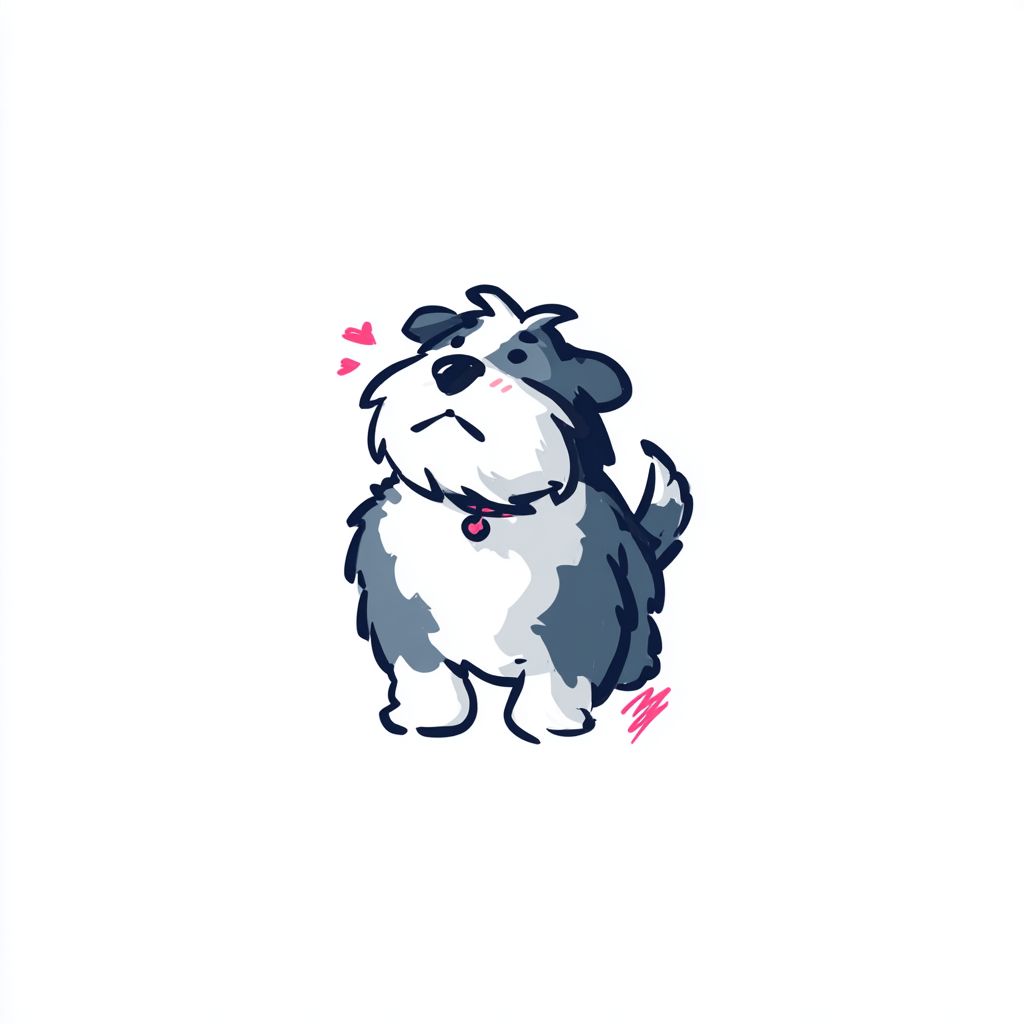 a cute fluffy English sheepdog illustration, colorful dog, small pupils, flat color, quirky, cartoon, pastel colors, white background --chaos 35 --profile khn77hz --stylize 350 --weird 300