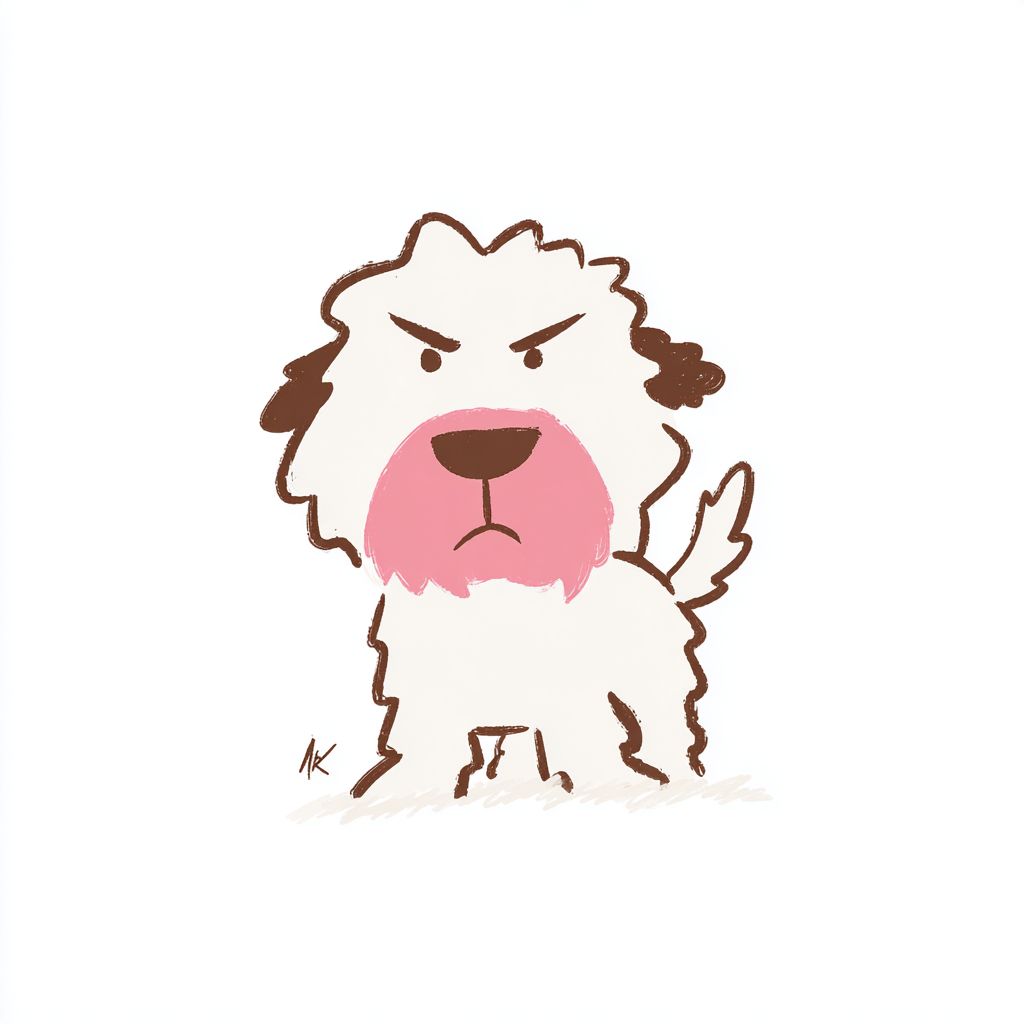une illustration d'un adorable chien de berger anglais fluffy, un chien coloré, de petites pupilles, une couleur plate, quirky, cartoon, couleurs pastel, fond blanc