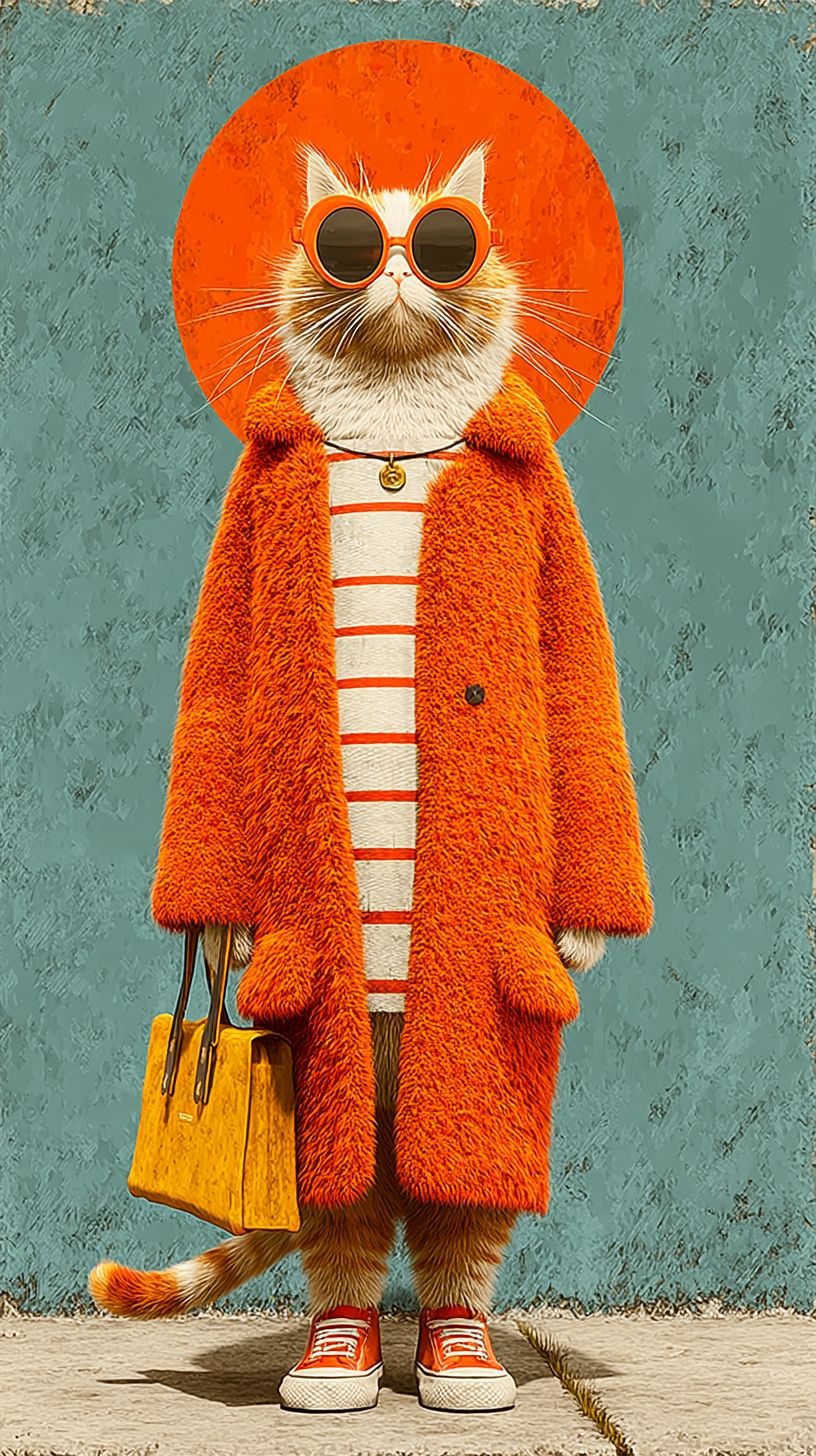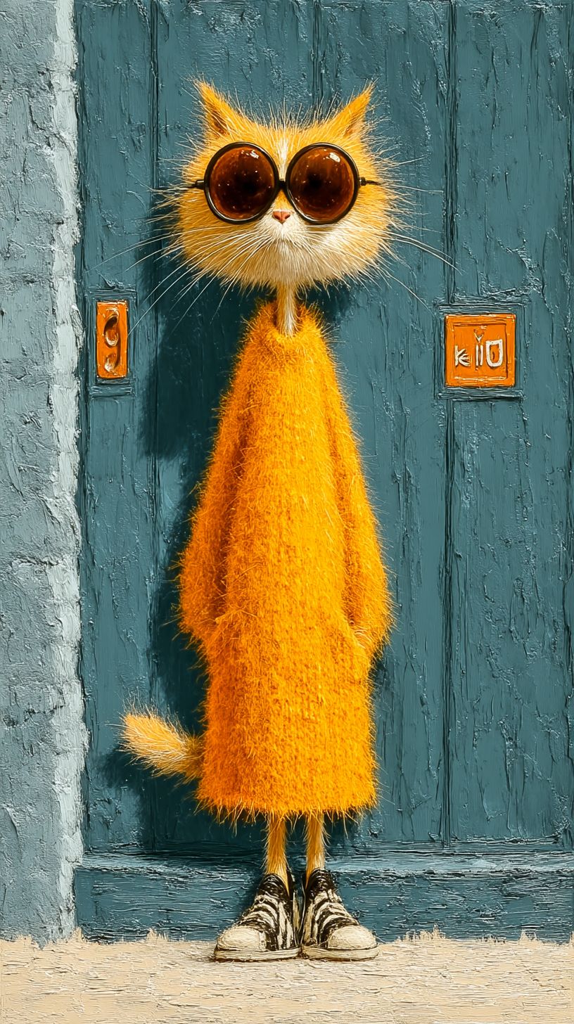 Un chat roux humanoïde portant des lunettes de soleil se tient debout