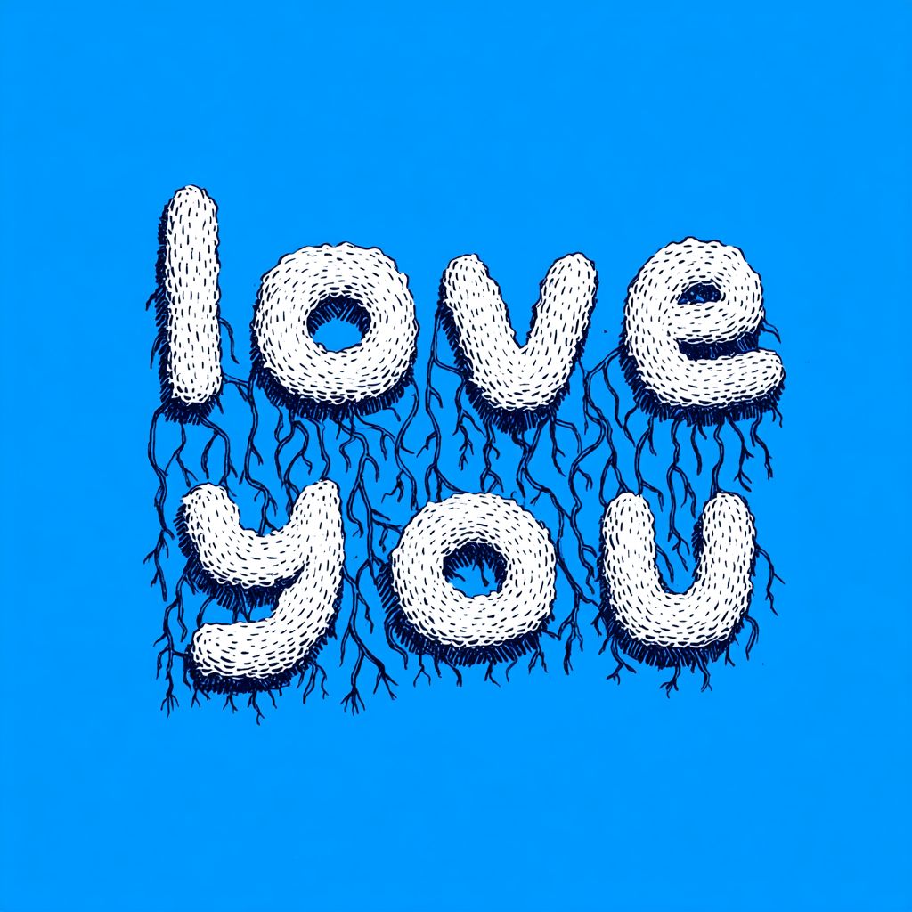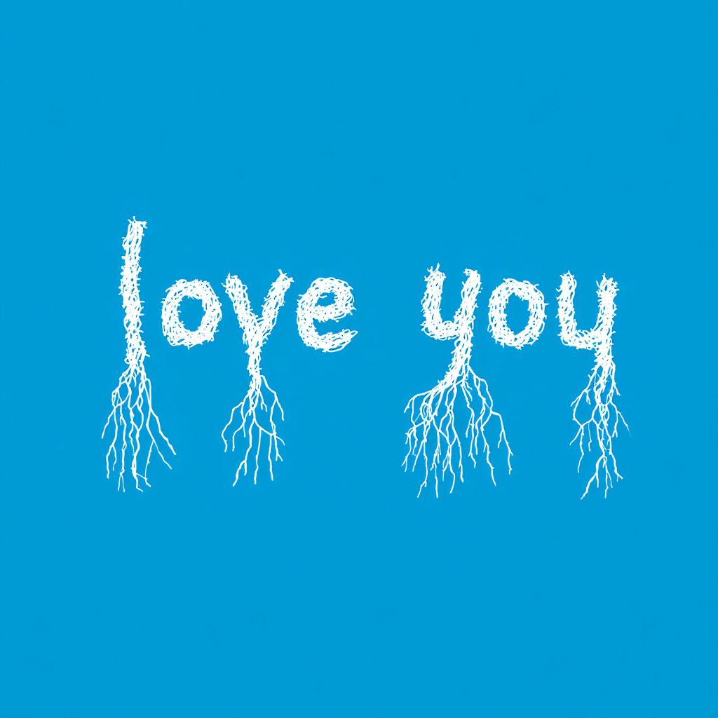 the words "love you" spelled out by bright white roots intertwining and weaving in a cartoonish hand drawn vector style simple --profile k1q48p2