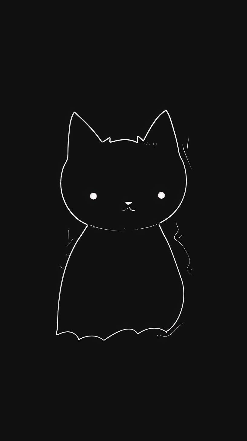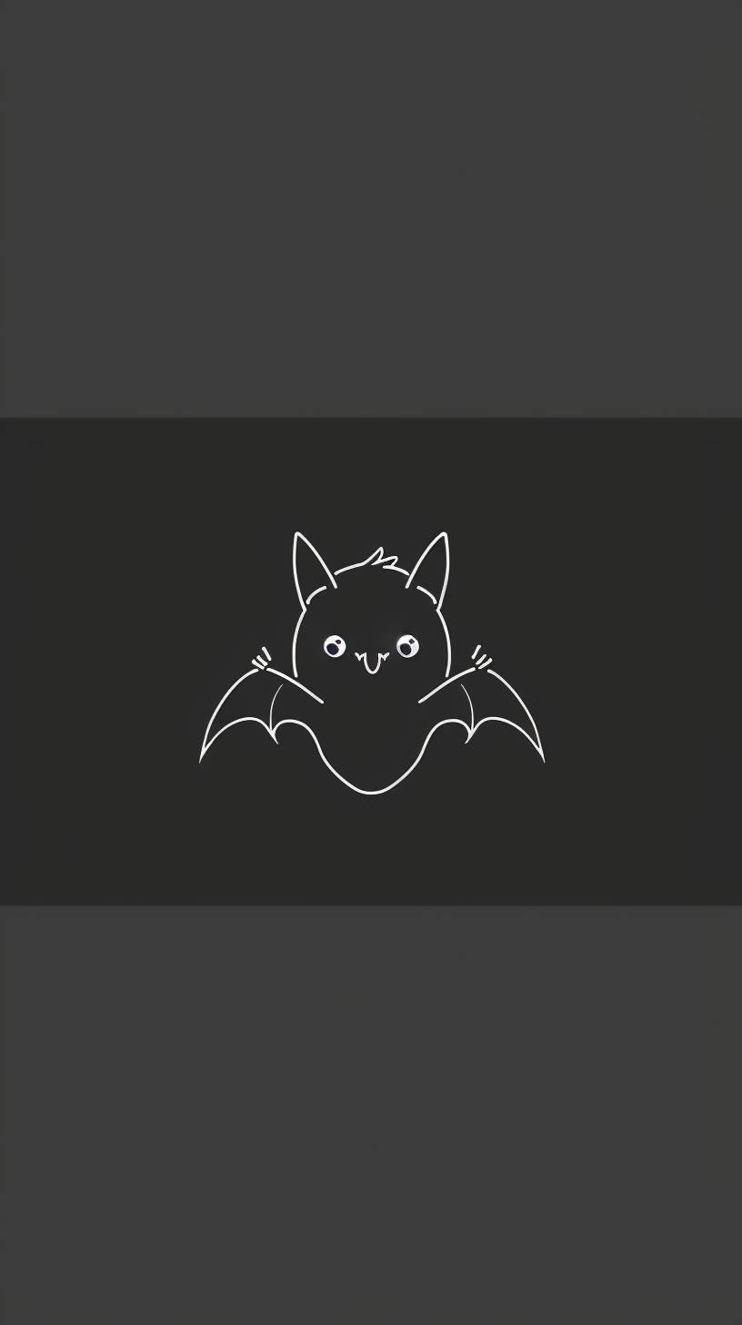 Un fond d'écran minimaliste pour écrans OLED avec une chauve-souris mignonne, fond noir et lignes blanches.